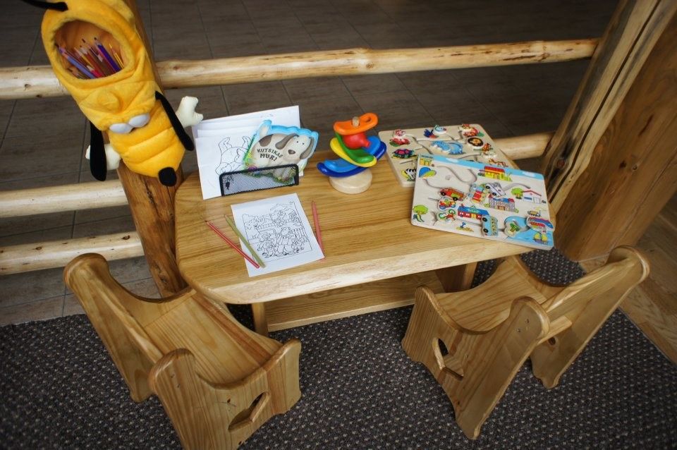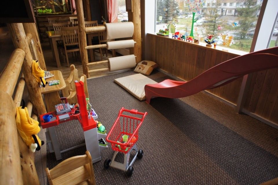 Дети могут провести время в игровой комнате и понаблюдать за аквариумными рыбками.