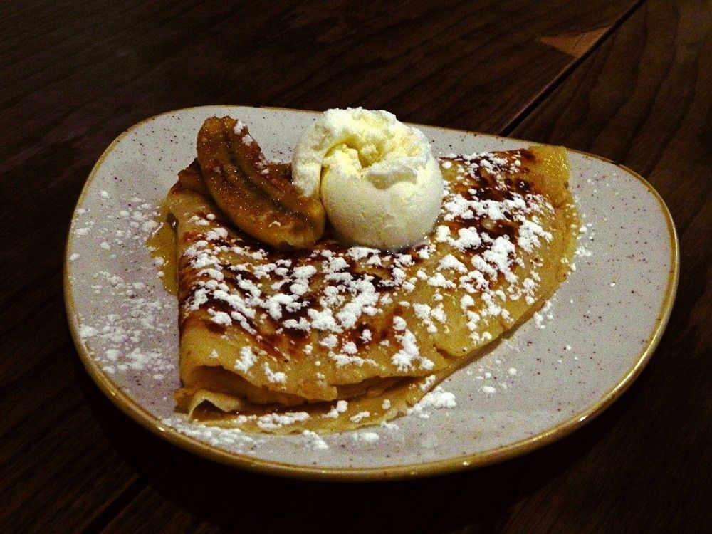 Ассортимент соленых и сладких блинов очень разнообразен, маленькие любители блинов найдут в меню различные сладкие пирожные, для взрослых имеется широкий выбор соленых блинов, в том числе и безглютеновые блины. Разумеется, на выбор имеются закуски, супы и салаты.