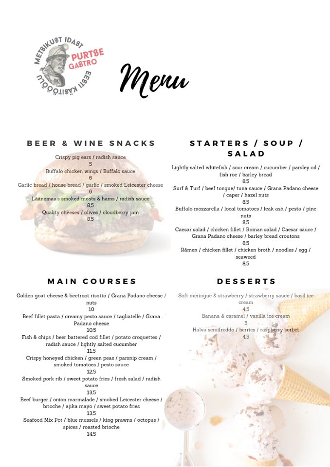 Purtse Gastro – это гастропаб с уютным интерьером и приятной террасой, который отличается первоклассными блюдами и пенящимся в бокалах крафтовым пивом Purtse. Также здесь предлагаются бодрящие коктейли и пузырящееся шампанское.