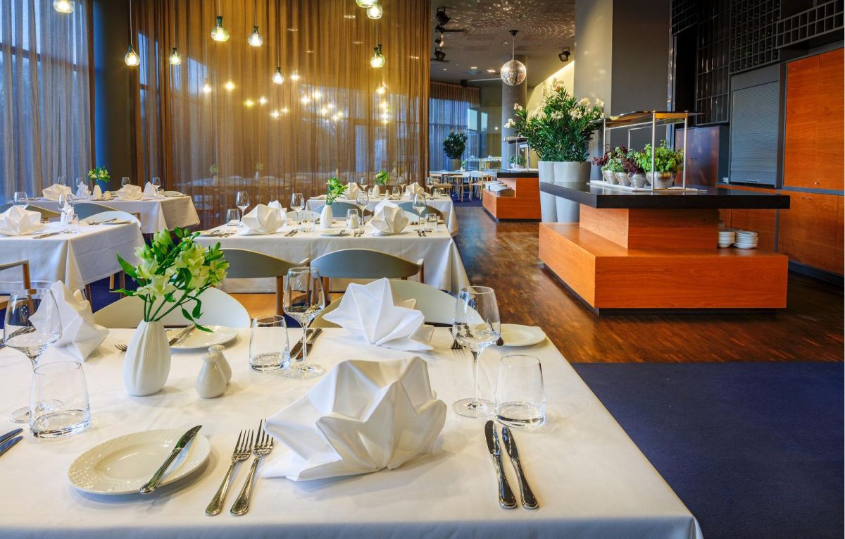 Для посетителей отеля мы предлагаем роскошный утренний буфет семь дней в неделю. Кроме того, по будням с 12.00 до 14.00 клиентов ждет обеденный буфет с выбором супов, свежих салатов, главных блюд и десертов. В летнее время посетителей также облуживает кафе на улице.