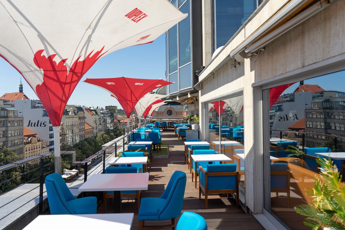 Днем Duplex является идеальным местом для обеда или ужина. С наступлением тьмы он трансформируется в один из лучших клубов Праги. Как приземлившийся на крышу дома космический корабль, он сияет огнями на уровне 6-го и 7-го этажей дома, стоящего в середине Вацлавской площади. С террасы ресторана открывается замечательный вид на город.