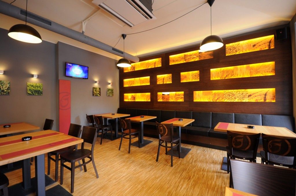 Ресторан продолжает традиции легендарной виноградской пивной Kravín. Он принадлежит сети ресторанов Gambrinus originál restaurant, которые объединяет пивной бренд Originál 1869, созданный в честь исторической для пивовара даты. Пиво Gambrinus Originál 10° разливается непосредственно из пивных танков.
