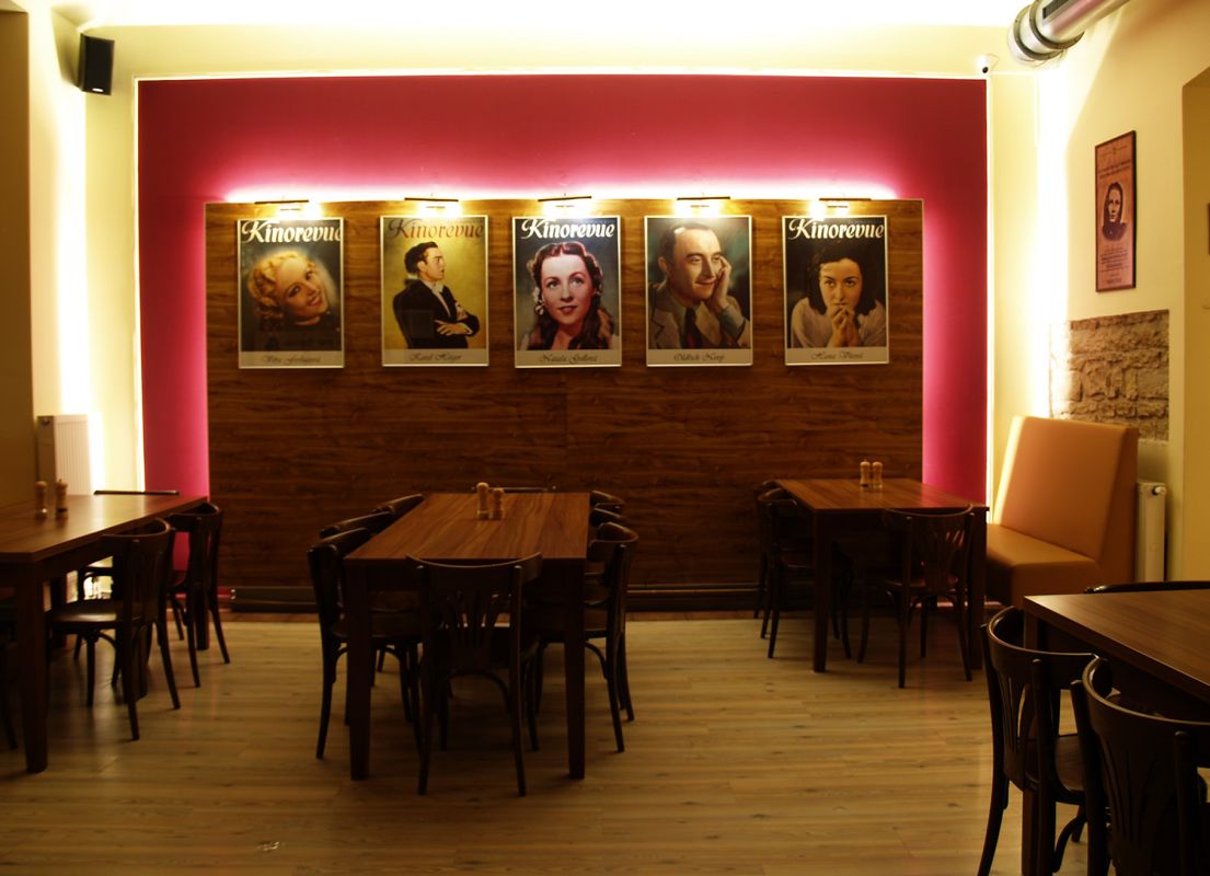 Стильный ресторан с 10-ю сортами разливного пива, включая пиво собственного производства «Виноградский Англичан», предлагает большой выбор бургеров, стейков и деликатесов чешской кухни. В меню – безглютеновые и вегетарианские блюда. Интерьер ресторана «Забытые времена» оформлен в духе кинематографа и звёзд кино 30-х годов 20-го столетия. В летнее время к услугам гостей - столики во дворике с садом.