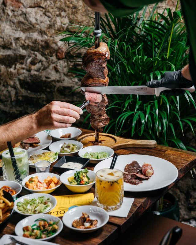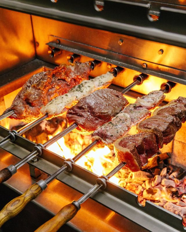 Churrasco – традиционный способ приготовления мяса (в основном – говядины) на гриле, когда куски накалывают на большой шампур. „Rodízio“ – способ подачи мяса, когда официант ходит по залу и отрезает на тарелки посетителей сочное мясо непосредственно с куска, нанизанного на этот шампур.