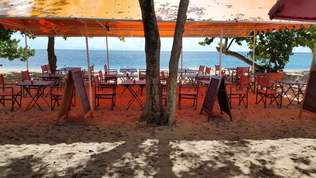 Пляжный ресторан и бар Caribbean food расположен на пляже Грос-Рейзен в Сент-Люсе.