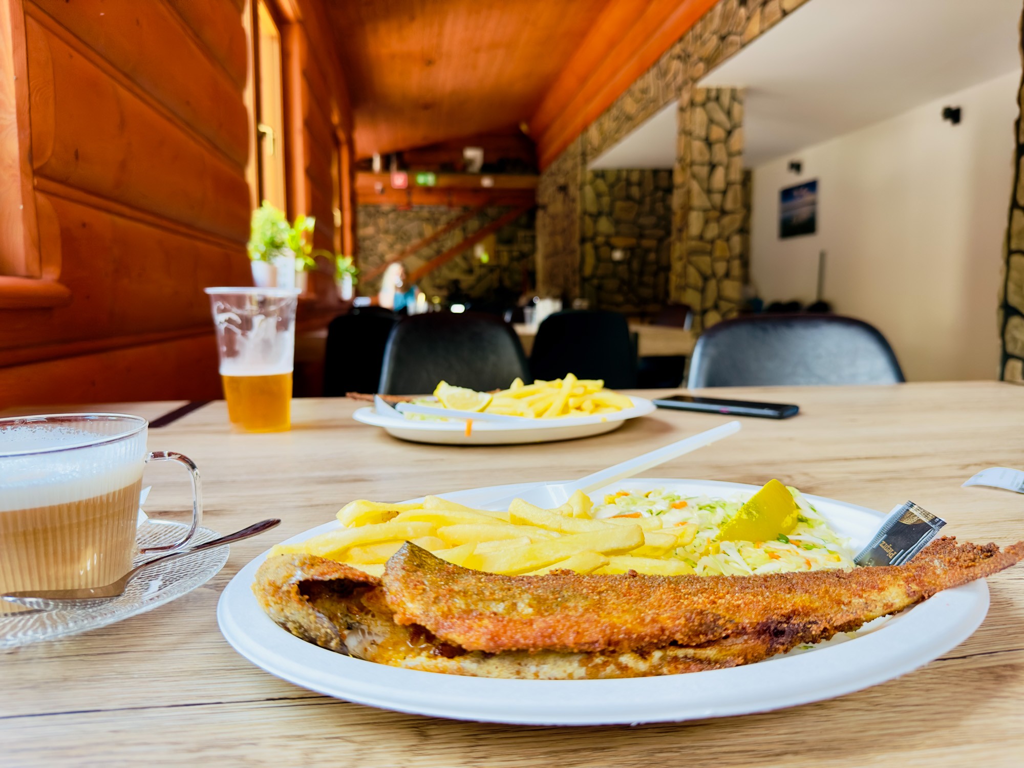 • Атмосфера: Ресторан оформлен в стиле традиционного польского охотничьего домика, с деревянной мебелью и элементами декора, создающими ощущение уюта и тепла. У гостей есть возможность поужинать как в помещении, так и на террасе с видом на пруд.