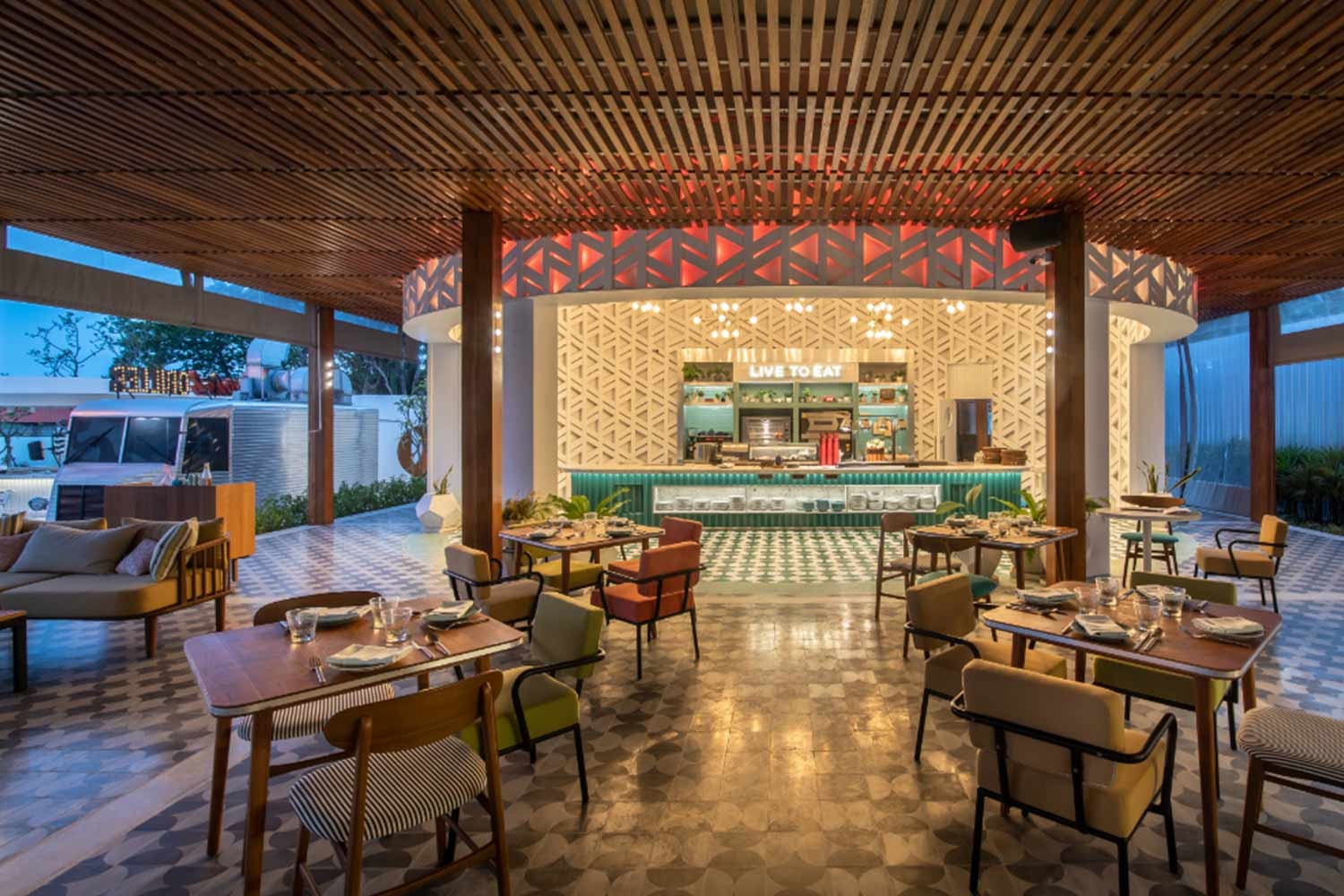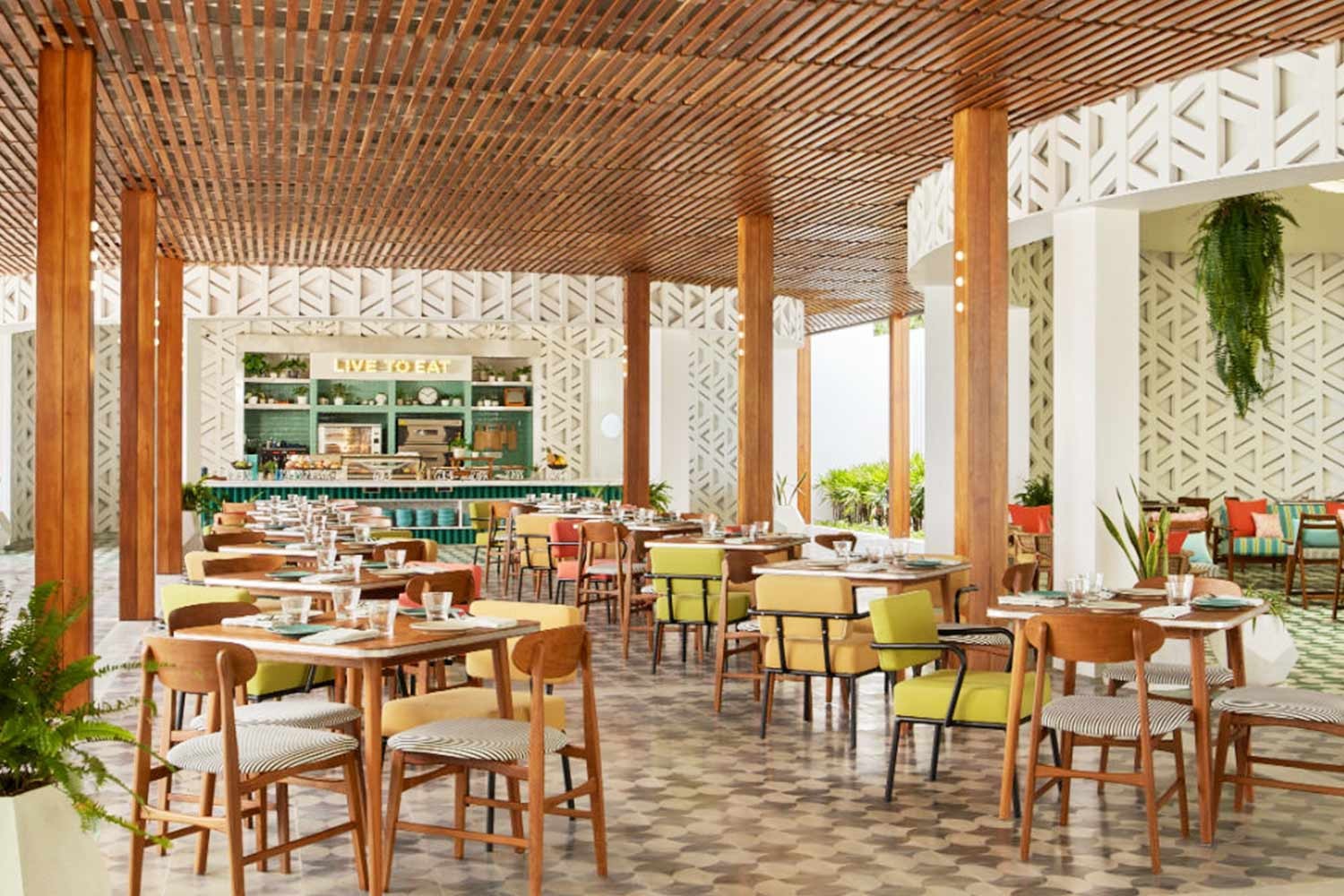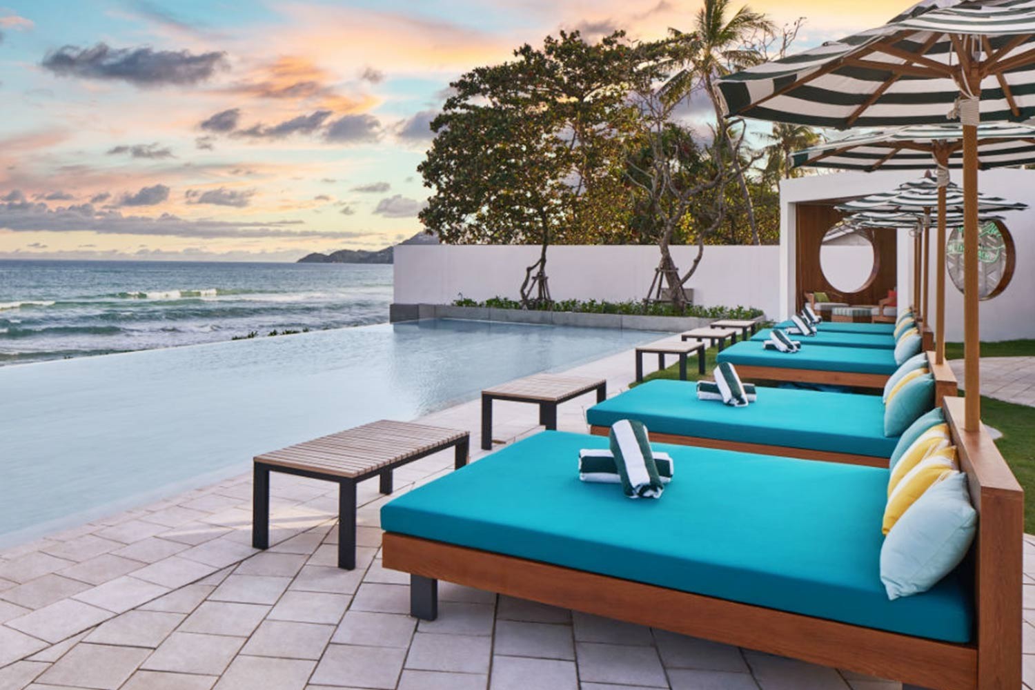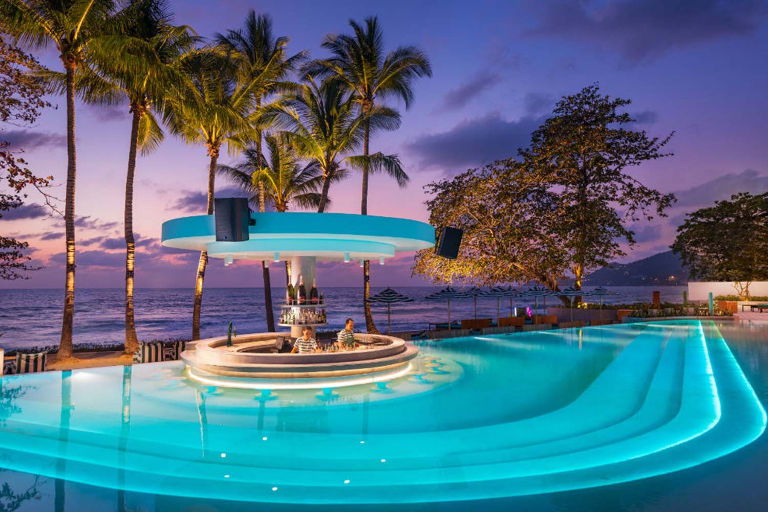 Клуб предлагает двухуровневую зону отдыха, где гости могут расположиться на удобных шезлонгах у бассейна в стиле лаунж, заказать освежающие коктейли в стильном баре или насладиться панорамным видом на океан с террасы. В центре внимания — инфинити-бассейн, окружённый пальмами и дизайнерской мебелью, создающей атмосферу роскошного тропического курорта.
