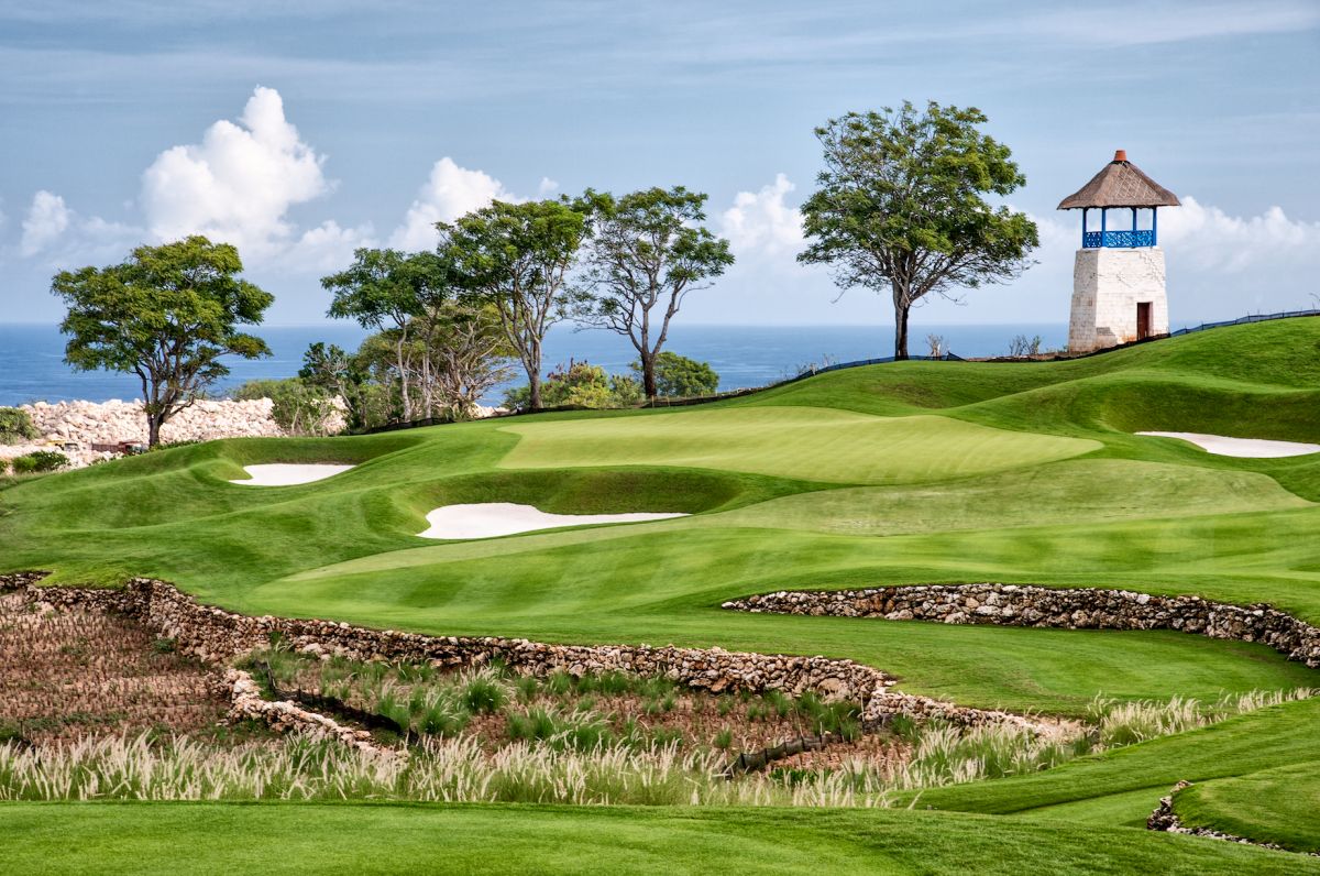 Обладая такой же основой из местного пробкового дуба, Майкл Кинг создал более простое, но не менее привлекательное поле для гольфа с более широкими фервеями и площадками для приземления.