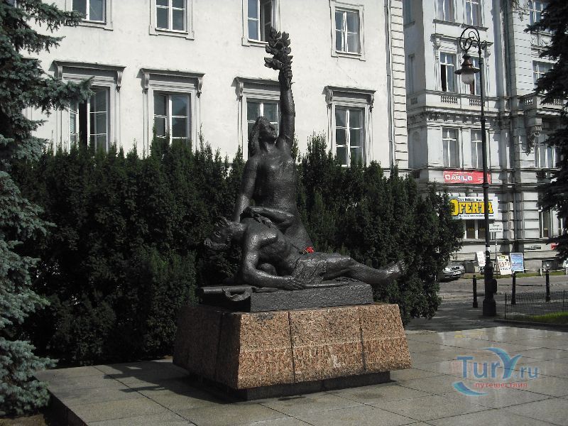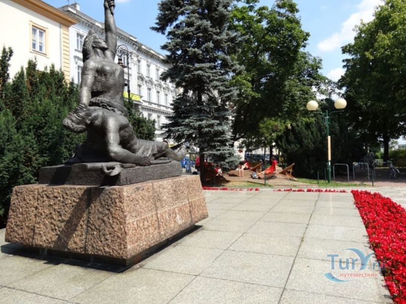 Памятник Партизану Народной гвардии расположен рядом с площадью Шарля де Голля, напротив бывшего Дома партии. Памятник был спроектирован Вацлавом Коваликом. Отливал бронзовую статую Станислав Жарын. Он также использовал гранитный цоколь из мавзолея Гинденбурга, который был выставлен Гитлером для почтения победы Германии в Восточной Пруссии. На этом цоколе можно заметить надпись "Партизанам - борцам за Народную Польшу". Автор изобразил раненного партизана, которого поддерживает женщина, держащая в руке оливковую ветвь. Торжественное открытие памятника состоялось 13 мая 1962 года в честь 20-летия образования Польской рабочей партии и отделения Народной гвардии имени Стефана Чарнецкого. В 2014 году проводилась реконструкция памятника. Военная организация Польской рабочей партии Гвардия Людова была создана во время Второй Мировой войны в январе 1942 года. Члены организации призывали к активизации борьбы против фашистов. Было проведено множество успешных боевых операций. За смелость и патриотизм героев установили Памятник Партизану Народной гвардии, который окружают цветочные клумбы и еловые деревья.