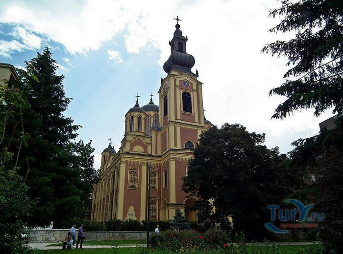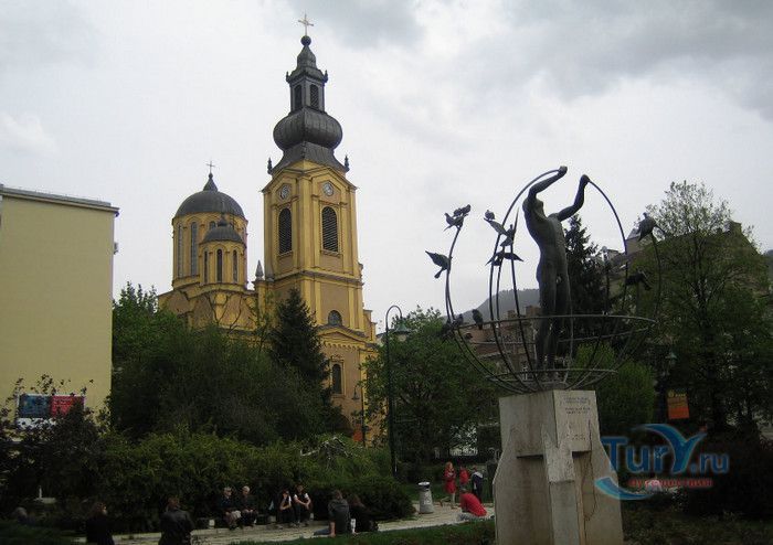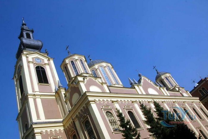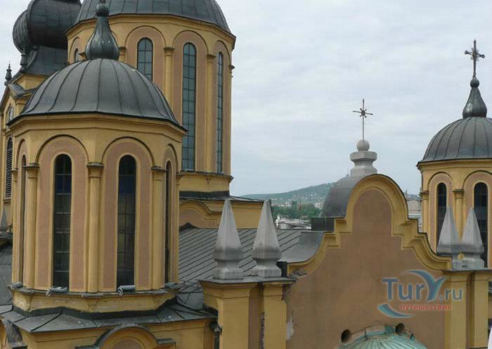 Соборная Церковь Рождества Пресвятой Богородицы - главный православный храм Сараево и один из крупнейших на Балканском полуострове. Решение о возведении православной церкви в Сараево было принято в 1859 году, строительные работы начались в 1863 году. Церковь была построена на пожертвования, которые собрали православные верующие Сараево, окрестных сёл, купцы из Белграда, Дубровника, Вены и Триеста, представители сербской знати. 556 дукатов выделил на возведение храма султан Абдул Азиза, который дал разрешение на строительство православной церкви в Сараево, чтобы смягчить Европу, которая обвиняла Османскую империю в религиозной нетерпимости и притеснениях коренных жителей, исповедующих христианство. Значительная сумма была собрана в России, кроме того были переданы иконы для иконостаса, церковные книги, утварь и облачения. Освящение храма состоялось 20 июля 1872 года, а строительные работы полностью завершены в 1874 году. Церковь построена архитектором Андреем Дамяновым. Храм имеет вид трёхнефной базилики с пятью куполами, в плане образует крест. Длина церкви - 37 метров, ширина - 22,5 метра, высота - 15,5 метра, диаметр большого купола - 34 метра. 45-метровая колокольня, построенная в стиле барокко, украшена резьбой. Внутренние стены церкви расписаны фресками, а окна украшены великолепными витражами. Во время Первой мировой войны австрийцами с церкви были сняты кровля и колокола, внутренне убранство было повреждено. Реставрационные работы были начаты в 1921 году. Крыша была покрыта медными пластинами, восстановлено покрытие пола, иконостас покрыт позолотой и установлены три новых колокола, отлитые в Триесте. Восстановительные работы были окончены в канун Рождества 1922 года, а на Рождество Христово была отслужена первая послевоенная литургия. Вторую мировую войну церковь Рождества Пресвятой Богородицы пережила без разрушений. В 2007 году при храме была основана библиотека, фонд которой насчитывает более 2000 томов религиозной и художественной литературы.