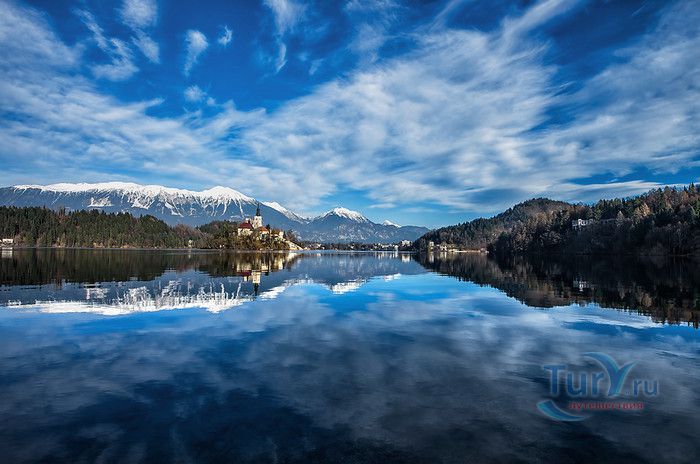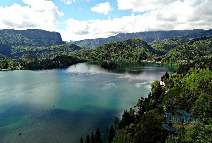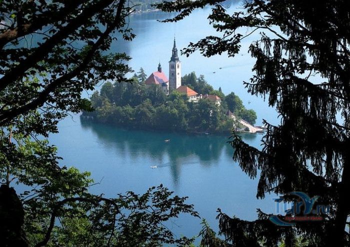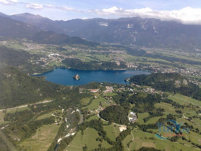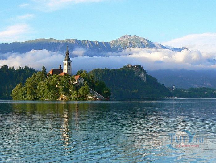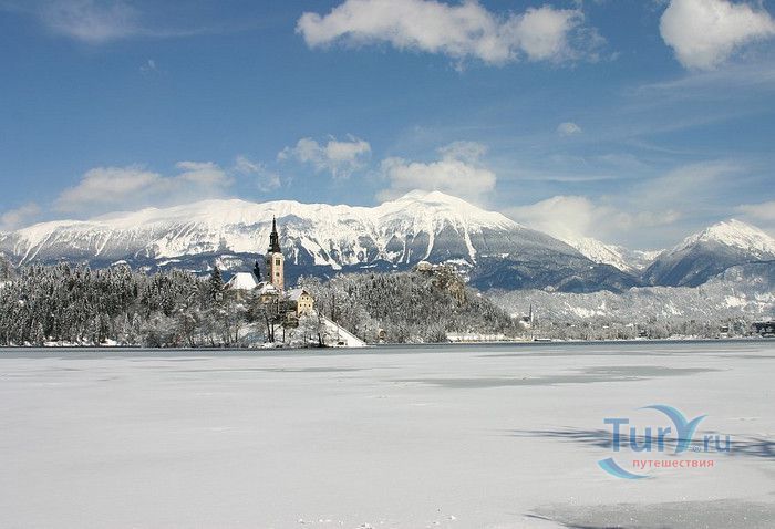 Озеро Блед расположено на северо-западе Словении, на территории Национального заповедника Триглав. Озеро находится на высоте 475 метров над уровнем моря, его площадь равна 1,45 квадратных километров, длина - 2,12 км, ширина - 1,3 км, максимальная глубина - 30,6 метров. Озеро Блед образовалось на месте тектонической впадины, появившейся в результате эрозийного воздействия ледника Бохинь. Талые ледниковые воды наполнили впадину, оставив в центре озера небольшой островок суши - остров Блед, на котором в 1465 году была возведена церковь Успения Пресвятой Богородицы - самый узнаваемый символ озера. На северном берегу Бледского озера, на скалистом утёсе стоит средневековый замок, построенный в XI веке. С его смотровой площадки открывается панорамный вид на озеро и горные вершины Юлийских Альп. Озеро со всех сторон окружено горами и густыми лесами, Альпы защищают местность от холодных северных ветров. Озеро подпитывается тёплыми источниками, поэтому замерзает лишь в холодную зиму, образуя естественный каток. Несмотря на прохладный горный климат и большую глубину, в озере Блед можно купаться с весны до осени. В июле вода в нём прогревается до 25°С. Летом возле озера Блед проводятся различные культурные мероприятия, проходят выступления музыкальных коллективов и групп, фольклорные вечера. Любители активного отдыха имеют возможность отправиться на прогулку вокруг озера пешком или на велосипеде, покататься на лошадях, прыгнуть с парашютом, заняться каякингом, прокатиться по озеру на катере или в лодке. Зимой сюда съезжаются любители зимних видов спорта, лыжный сезон длится с конца декабря до начала апреля. Ничуть не уступает местным достопримечательностям знаменитое Бледское лакомство - пирожное Кремна Резина (Кремшнита) - воздушный ванильный крем, приготовленный по специальному рецепту, на слоёном тесте.