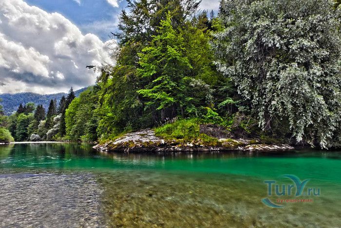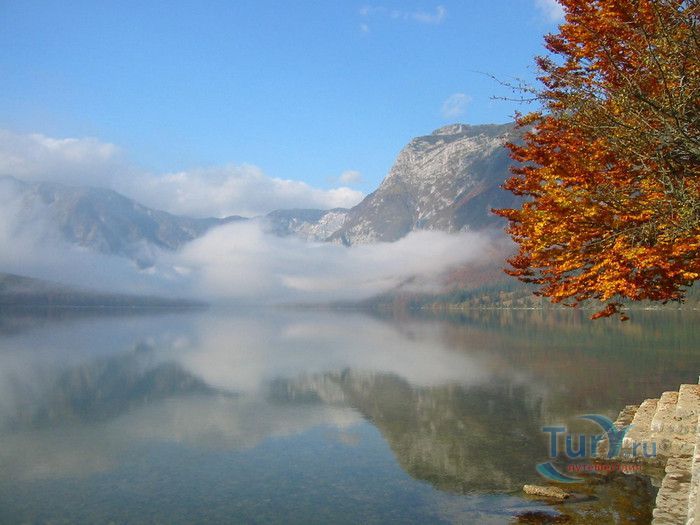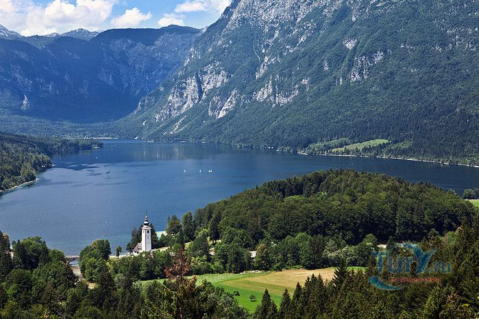 Озеро Бохинь расположено в Словении, в центре Национального парка Триглав. Бохинь - альпийское озеро ледникового происхождения, находится на высоте 526 метров над уровнем моря, с трёх сторон его окружают Юлийские Альпы. Бохиньское озеро является самым большим природным озером в Словении, занимает площадь 318 гектаров, его длина равна 4100 метров, ширина - 1200 метров, максимальная глубина - 45 метров. Бассейн озера имеет ледниково-тектоническое происхождение и был образован около 10000 лет назад в результате интенсивного эрозийного воздействия ледника Бохинь. Вода в озере достаточно холодная, летом она прогревается в среднем до 18° по Цельсию, зимой часто замерзает. Нетронутая красота высоких гор, зелёных лесов, живописных горных пастбищ и лугов, окружающих озеро, породили множество легенд и мифов. Самая известная из них - легенда о Златогоре, белой серне с золотыми рогами, которая охраняла райский сад, расположенный на высокогорном плато над долиной озера Бохинь. Золотые рога серны были источником сокровищ, спрятанных в саду. Многие пытались отыскать сокровища, в погоне за ними некий охотник ранил Златогора. Из капель крови животного выросли прекрасные розы, исцелившие серну. В ярости Златорог столкнул охотника в пропасть, а потом разрушил райский сад. Тайна триглавского сокровища так и осталась нераскрытой. На берегу озера Бохинь, в Рибчева Лаза, установлен памятник Златогору. Озеро Бохинь посещают тысячи туристов, любителей активного отдыха на природе. Десятки троп разной сложности ведут от озера к горным вершинам, есть пеший маршрут на Триглав - самую высокую гору Словении. В озере можно ловить рыбу, в его чистейшей воде водится форель. Для любителей купания здесь оборудовано множество пляжей, от больших до совсем крошечных. На озере можно заняться каякингом, парапланингом, покататься на яхте или лодке. Зимой Бохинь превращается в популярный горнолыжный курорт.
