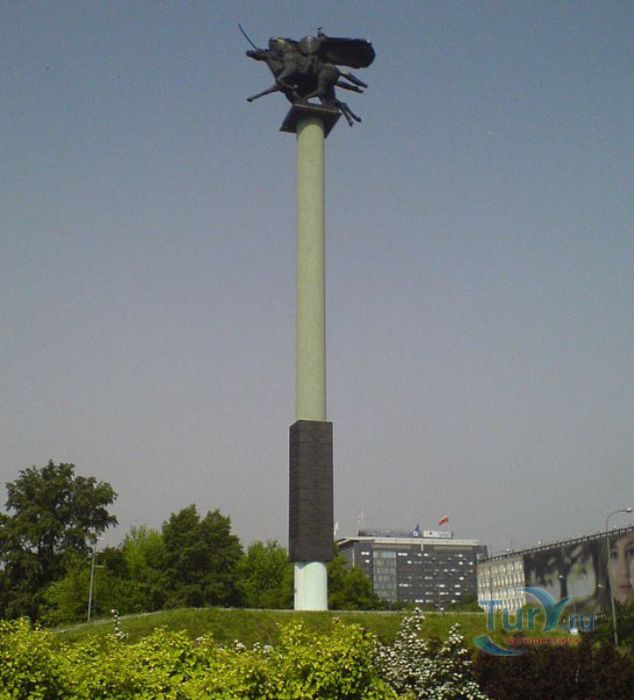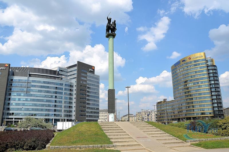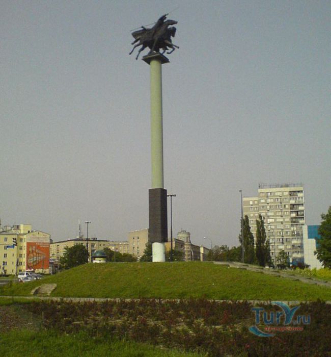 Памятник польской кавалерии высотой 16 метров был установлен в честь тысячелетия польской кавалерии бывшими кавалеристами в мае 1994 года. Идея создать подобную скульптуру появилась еще в 1978 году, однако проводились конкурсы на лучшую работу, что заняло достаточно много времени для её реализации. В итоге был выбран проект скульптора и промышленного дизайнера Мечислава Нарушевича. Он изобразил двух всадников на конях из разных периодов польской истории: первый с копьем, второй с мечом. Одного из всадников создали похожим на полковника Збигнева Старака, который был участником последнего сражения под Боруйском. Полковник был специально приглашён для того, чтоб позировать для создания памятника. Установили Памятник польской кавалерии вдоль Лазенковского маршрута.