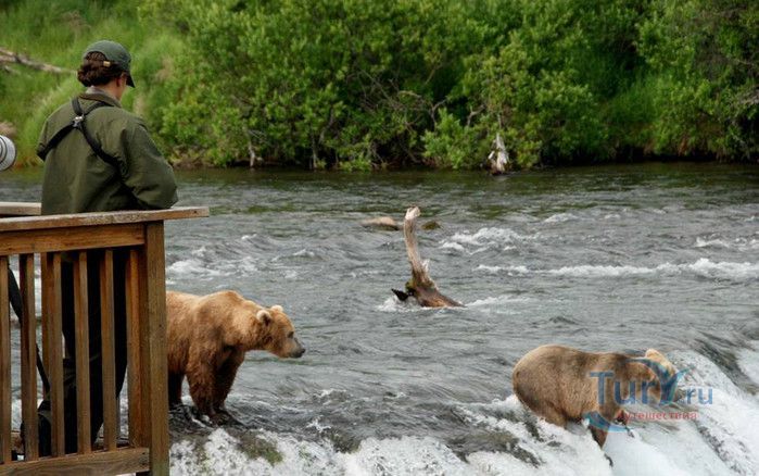 Национальный Парк и Заповедник Катмай расположен в Соединённых Штатах Америки, в южной части штата Аляска, напротив острова Кадьяк. С целью защиты вулканической области стратовулкана Катмай и Долины десяти тысячи дымов, район был объявлен национальным памятником ещё в 1918 году. Парк включает в себя 18 отдельных вулканов, из которых вулканы Катмай, Новарупта, Трайдент, Меджэйк, Мартин и Форпик являются активными. 2 декабря 1980 года актом Конгресса США по защите арктических территорий область Катмай была названа Национальным парком и заповедником, целью которого является сохранение дикой природы и популяции бурых медведей. Парк занимает территорию 16 564 квадратных километра, 140000 из которых - заповедная зона, где нет следов деятельности человека и запрещена охота. Долина десяти тысячи дымов, образованная пирокластическим потоком пепла, занимает около 100 квадратных километров, её глубина достигает 210 метров. Протекающая по долине река Лета, названная в честь мифологической реки царства Аида, вымыла в вулканических породах глубокие каньоны. Парк включает в себя часть Алеутского хребта, идущего вдоль побережья, и группу озёр в глубине территории. На юго-западе вплотную примыкает к Национальному заповеднику Бочарова. На территории парка водятся 42 вида млекопитающих, 137 видов птиц, 24 вида пресноводных рыб и 4 вида анадромных (живущих в морях, а размножающихся в пресной воде) рыб. Важнейшей составляющей экосистемы парка является рыба семейства лососевых - нерка, которая во время нереста (с июня по октябрь) является основным "меню" для бурых медведей и белоголовых орланов. Катмай славится своей популяцией бурых медведей, самой большой из охраняемых популяций. По оценке Службы национальных парков США на территории парка обитают более 2 000 медведей. Среди туристов самым популярным местом парка Катмай является лагерь Брукс, расположенный в устье реки Брукс и на берегу озера Накнек. С июня по сентябрь здесь работают Центр для посетителей и палаточный лагерь. Гости парка имеют возможность понаблюдать со смотровой площадки у водопада Брукс Фолс за медвежьей охотой на лосося, покататься на лыжах бэккантри и байдарках, отправиться на увлекательную рыбалку или в поход по туристическим маршрутам парка Катмай.