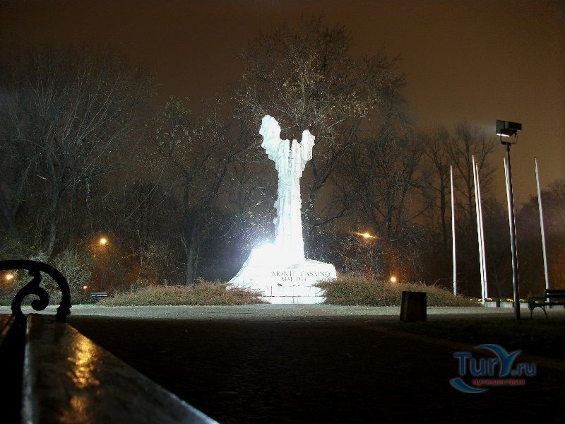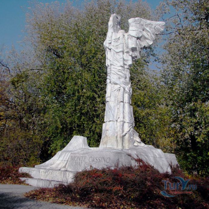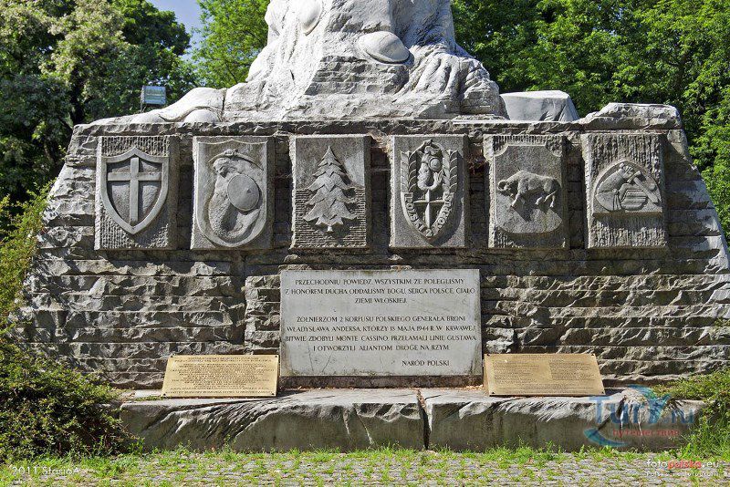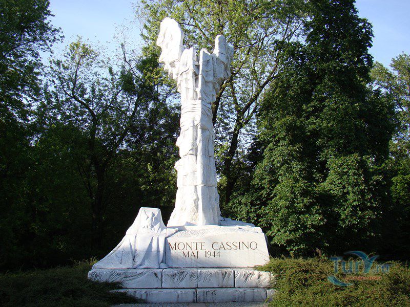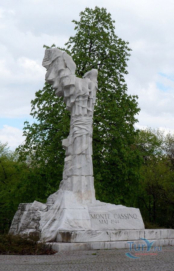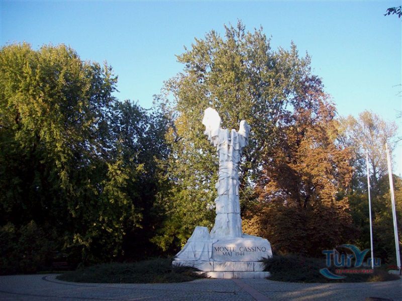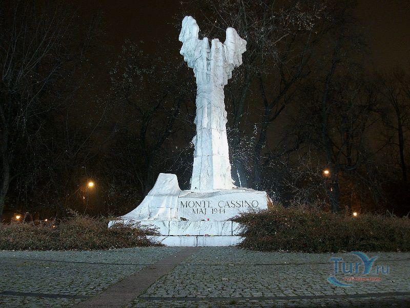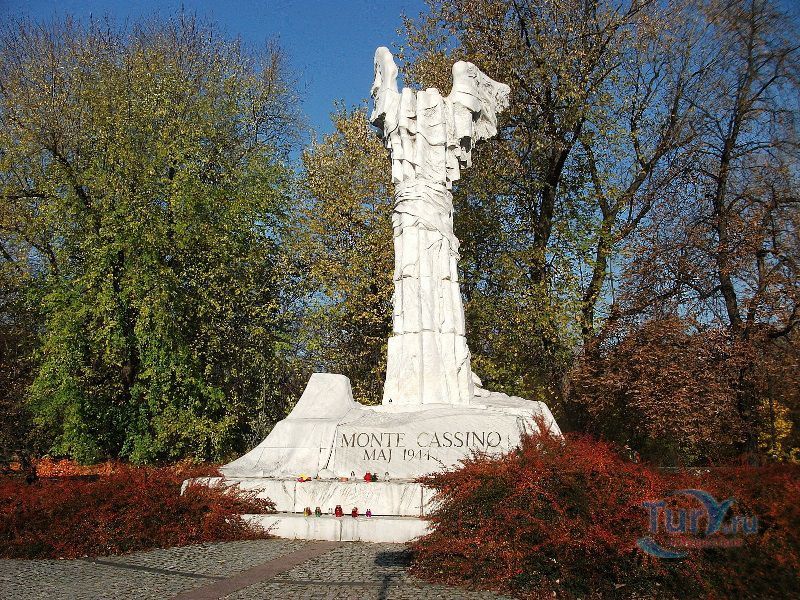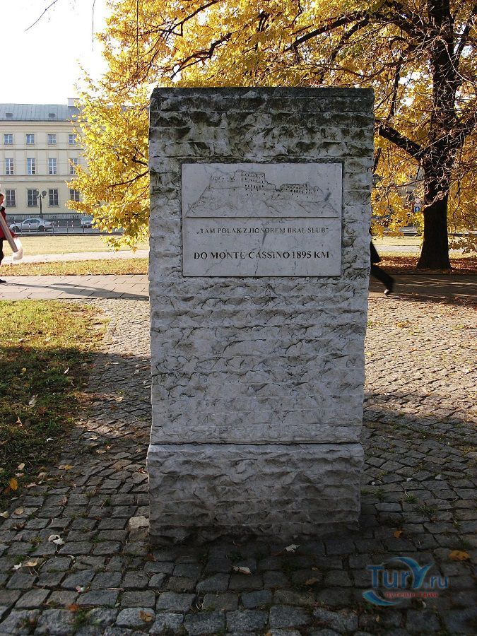 Памятник в честь битвы при Монте-Кассино расположен в деловой части столицы, на площади между улицами Андерс и Сада Красинских, недалеко от входа в Национальный археологический музей. Памятник открыт в 1999 году в память солдат 2-го Польского Корпуса, которые в 1944 году после ожесточённых боёв, продолжавшихся в течение несколько недель в районе горы Монте-Кассино в центре Италии, захватили монастырь, который немцы использовали как крепость. Это позволило открыть союзникам дорогу на Рим. 2-ой Польский Корпус состоял из бывших узников. Под руководством генерала Андерса в нём сражались также украинцы и белорусы, которые назвались поляками, лишь бы вырваться из лагерей. Поэтому памятник посвящён не просто полякам, а всем погибшим участникам битвы при Монте-Кассино. Монумент изготовлен из железобетона и покрыт белым мрамором. Это 12-метровая колонна в виде обезглавленной древнегреческой богини Ники, которая считается богиней победы. При взгляде на колонну кажется, будто она истерзана и изранена в бою. Рядом на двухметровом цоколе стоит урна с прахом погибших героев, на которой виден крест Монте-Кассино и высечены гербы пяти польских подразделений, принимавших участие в битве. Известно, что в той битве было убито 924 бойца, а 4199 - были ранены. Сюда до сих пор приносят цветы в память о погибших в той страшной кровопролитной битве. Многие приезжают из других стран, чтобы своими глазами увидеть место, где хранится прах их предков, воевавших во 2-ом Польском Корпусе.