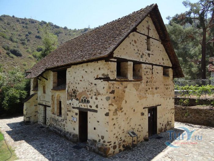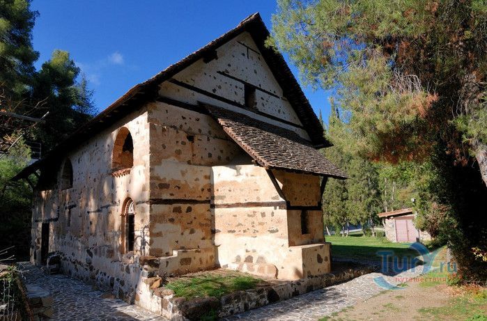 Церковь Святого Николая Под Крышей расположена в двух километрах от деревни Какопетрия, у подножья Троодосских гор. Это единственная церковь, сохранившаяся от древнего монастыря XI века, она считается одной из самых интересных византийских церквей на Кипре. Монастырь процветал и в Византийский период, и в годы владычества на острове франкских рыцарей. В XVII столетии начался его упадок, а в начале XIX века, со смертью последнего монаха Герасимоса, имущество и строения обители были описаны и сданы в аренду. До наших дней сохранилась лишь церковь Святого Николая под крышей. Храм изначально имел крестово-квадратную форму, типичную для византийских церквей, и был увенчан традиционным куполом. Притвор и неф церкви были построены в XII веке. К концу XII столетия храм накрыли крутой двускатной крышей, под которой сегодня скрывается крестообразный свод и купол. Крышу возвели для дополнительной защиты церковного строения и уникальных настенных росписей от разрушительного воздействия снегов, дождей и ветров. Именно благодаря этой крыше церковь и получила название "Под крышей". Мировую известность церковь Святого Николая под крышей приобрела благодаря своей настенной росписи, которая создавалась в течение более 600 лет, с XI по XVII век. Росписи XI столетия сохранились фрагментарно, до наших дней дошли фрески Жизнь Иисуса, Воскрешение Лазаря, Успения Девы Марии и Святого Николая, в левом углу которой увековечен образ жертвователя, оплатившего её создание. Картина Сорок мучеников Севастийских датируется XII веком и посвящена первым христианам, принявшим мученическую смерть. Большая часть росписей была выполнена в XIV веке - Распятие, Воскресение, изображения Христа-Пантократора на куполе храма, Пророков и евангелистов - на купольном барабане, в нефе и притворе изображена группа святых в натуральную величину. Фреска с редким иконографическим типом Святой Марии, кормящей грудью Божественное дитя, расположенная справа от иконостаса, также была написана в XIV столетии. Картина сохранила оригинальные цвета и краски и ни разу с момента своего создания не реставрировалась. Наиболее поздние настенные росписи датируются 1633 годом, это изображения апостолов Петра и Павла, которые украшают восточные пирсы, поддерживающие купол. Церковный иконостас был изготовлен в XVII веке, он отделяет алтарное пространство от всего храма. Церковь Святого Николая под крышей - один из важнейших религиозных памятников Кипра, её называют Музеем византийского искусства. В 1985 году церковь была внесена в список Всемирного наследия ЮНЕСКО.