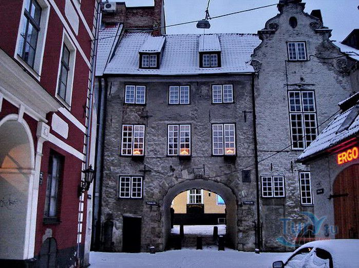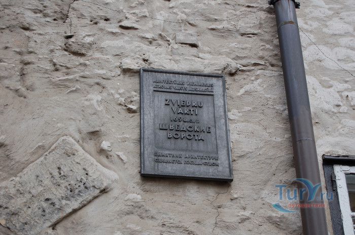 Шведские Ворота - единственные из восьми городских ворот Риги, которые сохранились в неизменном виде до наших дней. Ворота были построены в 1698 году, чтобы соединить внутренний город с казармами и домами, расположенными за городскими стенами. Как и другие городские ворота, они запирались на ночь и открывались на рассвете. Ключи от ворот хранились в городской ратуше, а прочность запоров "страховала" ночная стража. По одной версии своё название ворота получили, так как были построены во время шведского владычества в Риге. По другой - название дано в честь героизма шведов, проявленного ими в 1710 году, во время Северной войны, когда русские войска осаждали Ригу. Город защищал шведский гарнизон, и только эпидемия чумы и голод заставили его сдаться. Пётр I по достоинству оценил мужество шведских солдат и, войдя в город, отпустил его защитников. Ворота, через которые они покидали Ригу, были названы Шведскими. Как ни одни другие городские ворота, Шведские обрастали множеством легенд. Согласно одной - ворота прорубил в своём доме местный предприимчивый купец, чтобы брать плату со всех проезжающих через них. Другая легенда гласит, что в ворота была замурована девушка, тайно от родителей встречавшаяся со шведским офицером. Пойманная девица в наказание и в назидание остальным, была заживо замурована в Шведские ворота, и по сей день влюблённые могут в полночь услышать её шёпот: "И все-таки я его люблю!". Местные старожилы рассказывают также, что в доме над воротами некоторое время жил палач, который предупреждал горожан об очередной казни, выставляя в окне красную розу. В 1926 году Шведские ворота были арендованы у города Обществом архитекторов Латвии. Дом и ворота были реконструированы по проекту архитектора Александра Трофимова. Здание приобрело вид, приближенный к тому, который оно имело первоначально. Фронтону, порталам, консолям с масками были приданы характерные барочные черты. Сегодня, кроме Союза архитекторов, здесь располагаются библиотека и творческая студия.