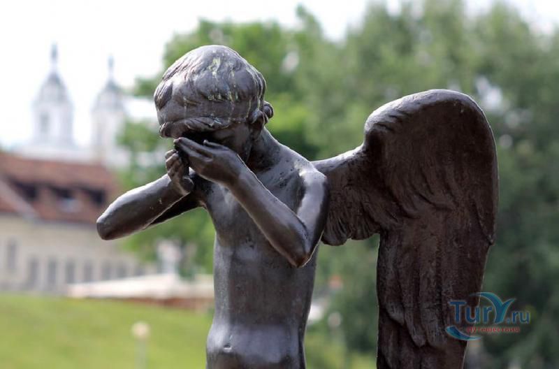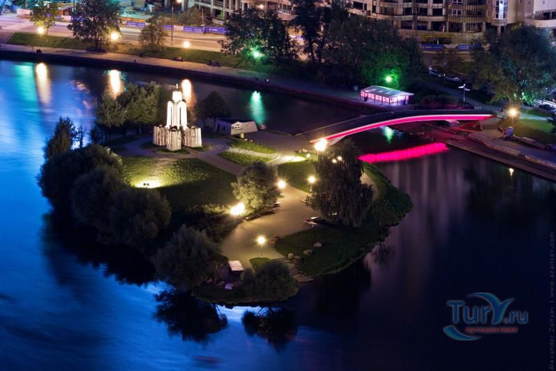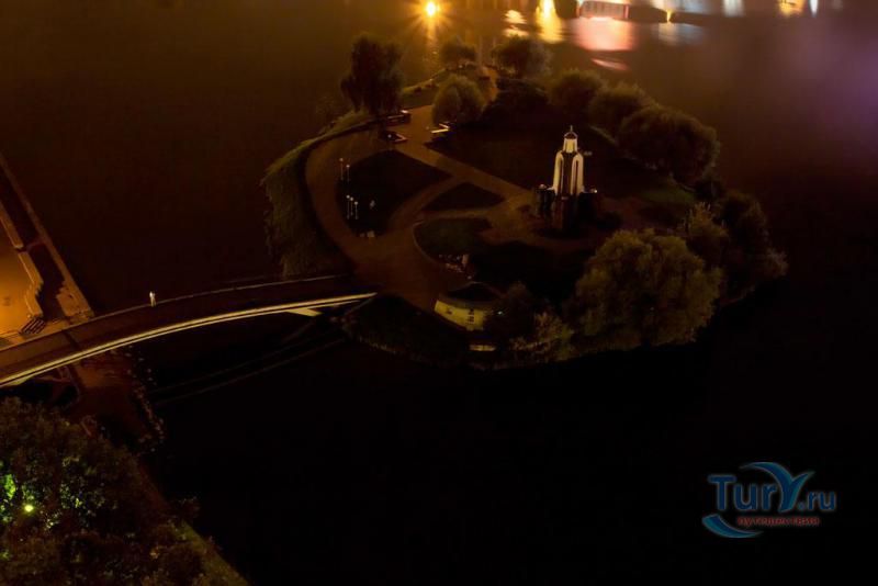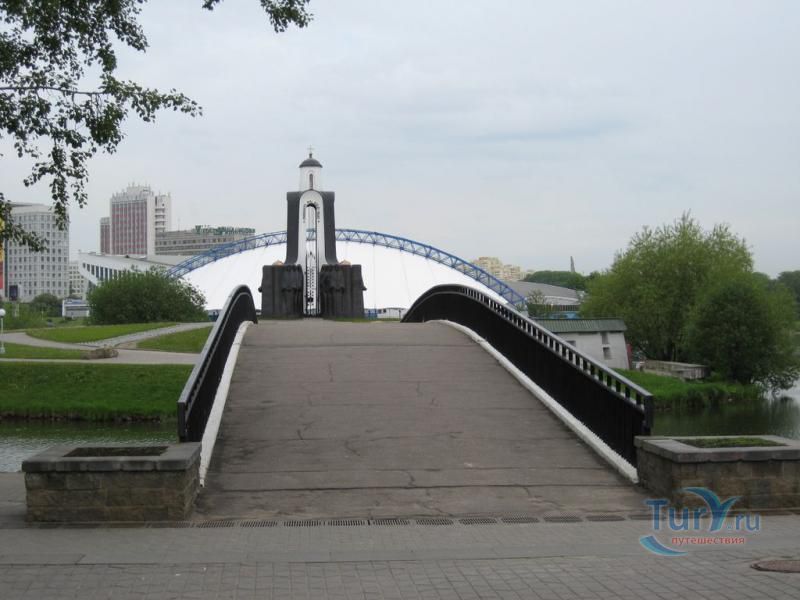 Небольшой горбатый мост с Троицкого предместья ведет на "Остров слез" («Остров мужества и скорби»).Здесь 3 августа 1996 г. был открыт памятник "Сынам Отечества, которые погибли за его пределами"Перед памятником - валун с бронзовой иконой Божьей Матери и текстом, поясняющим тему памятника. Этот валун в качестве закладного камня на месте будущего мемориала был установлен на острове еще в 1988 г. Памятник выполнен в виде храма, в основу очертаний которого положен первоначальный облик храма Ефросиньи Полоцкой, такой, каким он был в XI веке. Внутри памятника - четыре алтаря с высеченными именами 771 погибшего воина-афганца. Возле каждой фамилии родные и близкие погибших при посещении мемориала могут установить зажженную свечу. Внутренняя поверхность стен памятника и его купол расписаны библейскими сюжетами. Здесь же изображены архангелы Михаил и Гавриил, считавшиеся покровителями белорусского воинства еще со времен Грюнвальдской битвы. В центр креста, возвышающегося над храмом, вставлен рубин. Фонарь, специально установленный над полом, освещает крест снизу. Светящийся рубин символизирует кровь Христа и кровь павших воинов. В центре храма находится Святое место. Здесь в землю заложена афганская земля, омытая кровью наших солдат, а также земля привезенная с их могил. Здесь же храниться капсула со списком погибших и с обращением к потомкам. К пяти колоколам прикреплены металлические струны, гудящие на ветру, звонят колокола Памяти по душам погибших белорусских воинов.