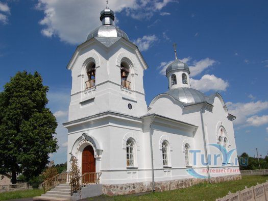 Расположен в центре деревни. Построена в 1865 из кирпича на месте предыдущего деревянного храма с колокольней, который был построен в 1599 г. Памятник архитектуры ретроспективно-русского стиля. Здание симметричной продольно-осевой композиции: 2-ярусная колокольня, прямоугольная в плане трапезная, кубовидный молитвенный зал, апсида. Двускатная крыша и граненый сферический купол колокольни завершены луковицеподобными головками на граненых барабанах. Фасады прорезаны парными и одинарными арочными оконными проемами.