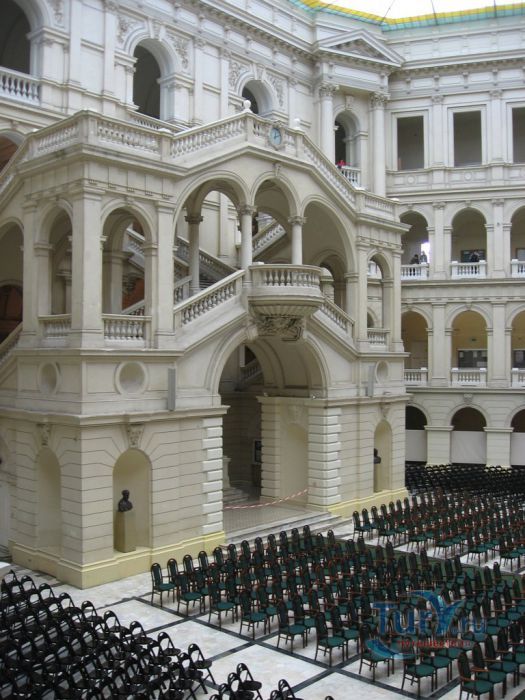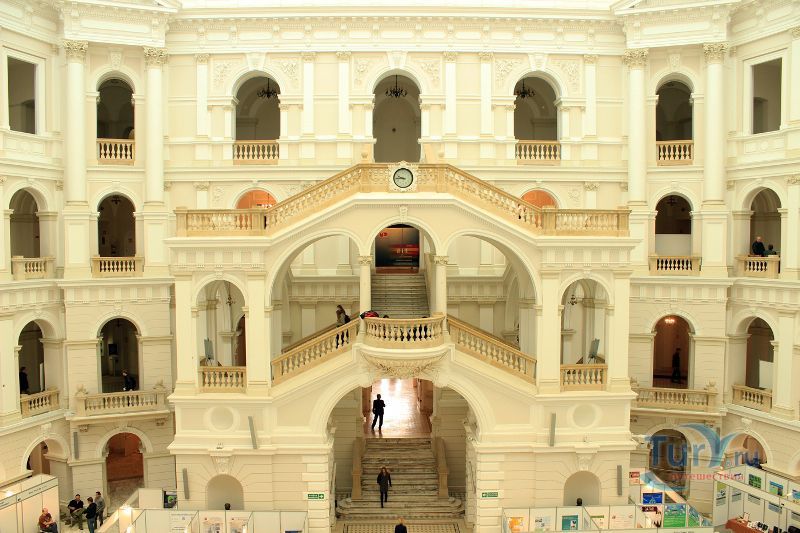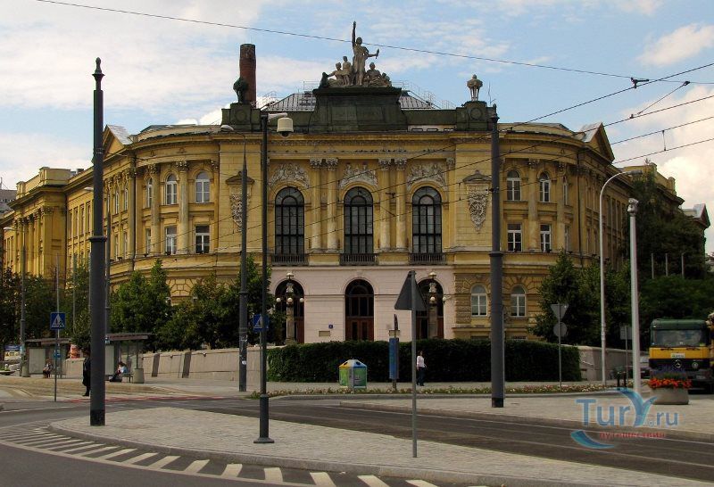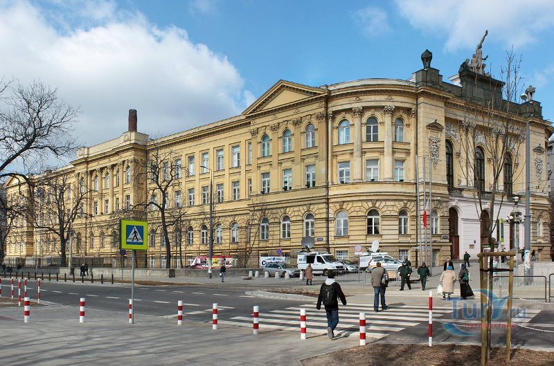 Главное Здание Варшавского Технологического Университета представляет собой великолепное историческое здание, возведённое на рубеже 19-20 веков. Здание построено в стиле итальянского Возрождения и барокко по проекту архитекторов Стефана Шиллера и Бронислава Брохвич-Рогойского с соблюдением европейских стандартов. Подчёркивается монументальный характер здания, выделен двухэтажный фасад с закруглёнными углами и украшенный скульптурами, рельефами и фресками. Здание Технологического Университета является одним из шести зданий, входящих в состав большого университетского комплекса. Сначала это был русский университет с русским языком обучения, в котором бойкотировали польских студентов. В 1915 году был основан Варшавский Технологический Университет, который стал первым в Польше университетом с обучением на польском языке. Во время Второй мировой войны здание университета подверглось разрушению, после окончания войны здание было реставрировано. Во внутренней части здания расположена каменная терраса со скамейками. Расположено здание университета в центре столицы на Университетской площади и является одним из старейших и крупнейших технических университетов в Польше.