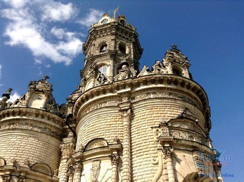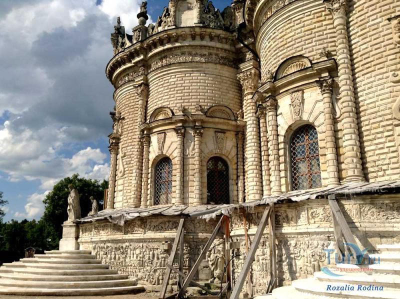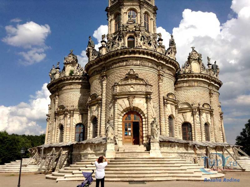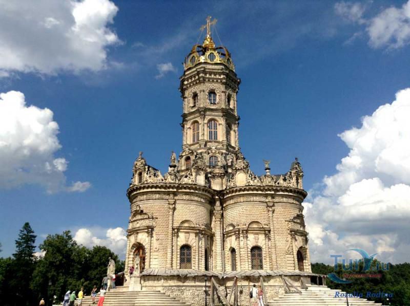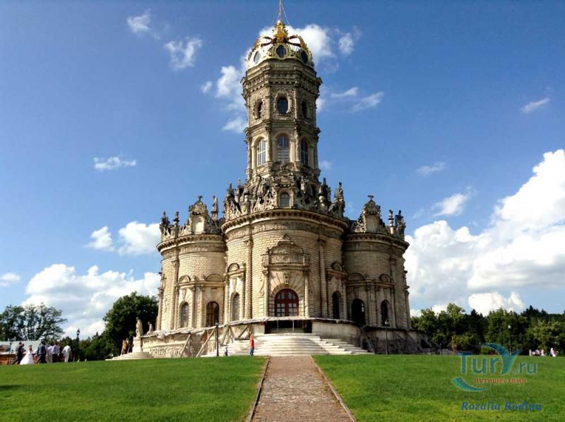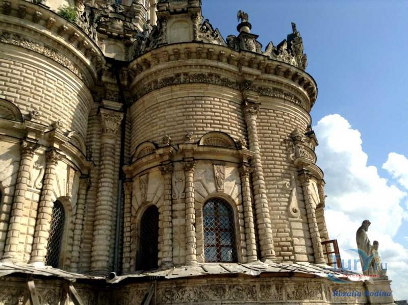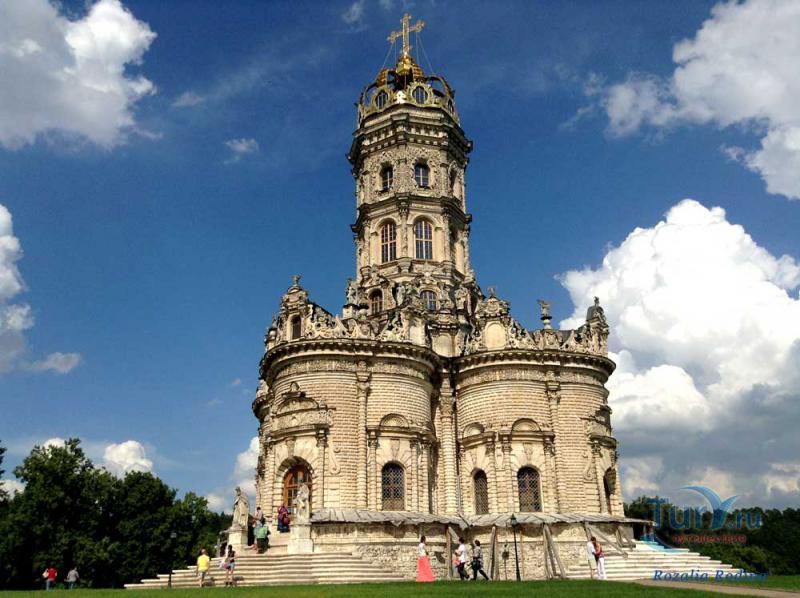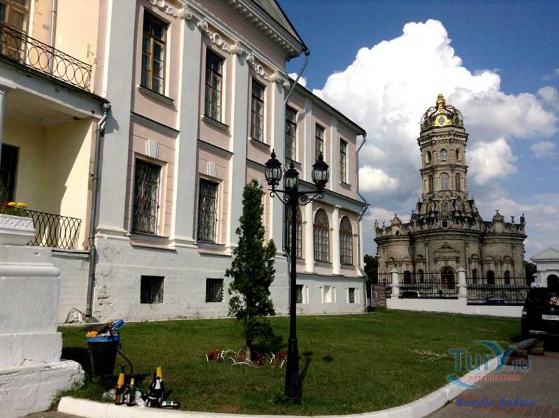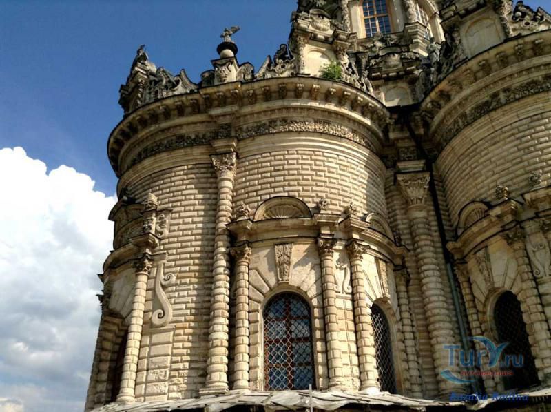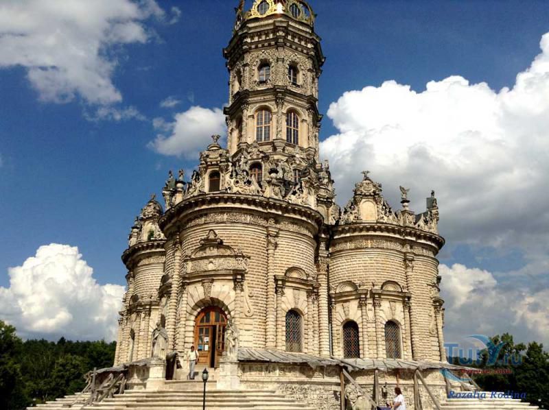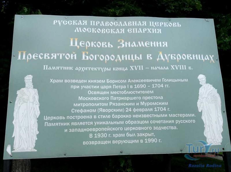 В 1690 году князь Голицын заложил в Дубровицах белокаменную Знаменскую церковь - храм необыкновенной красоты, при закладке которого присутствовал сам Пётр Первый. Храм представляет собой столпообразное здание на высоком постаменте, окруженное открытыми галереями с веерообразными лестницами. Над первым четырёхлепестковым ярусом возвышается стройная восьмигранная башня, увенчанная оригинальным ажурным куполом. Храм снаружи и изнутри богато украшен барельефами, резьбой по камню и круглой скульптурой. Характерные скульптуры и латинские надписи, которые позже были заменены на русские, свидетельствуют о подражании западноевропейским католическим барочным храмам, но есть здесь что-то и от «нарышкинского барокко». Голицын смог воплотить столь дерзкий архитектурный замысел и создать такой шедевр во многом благодаря близости к Петру I.