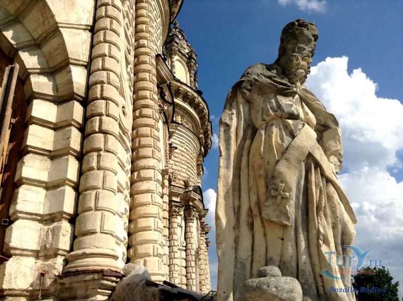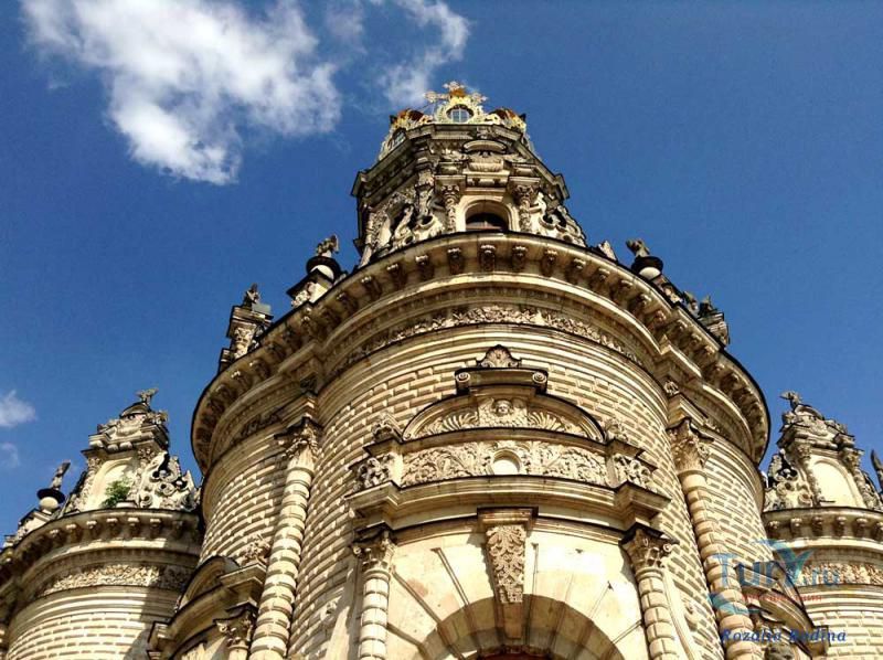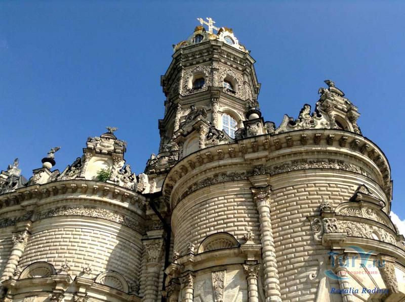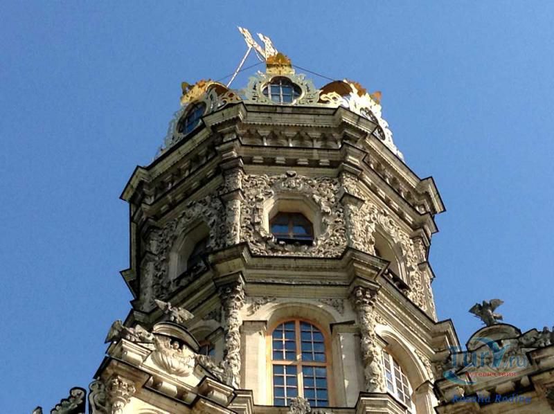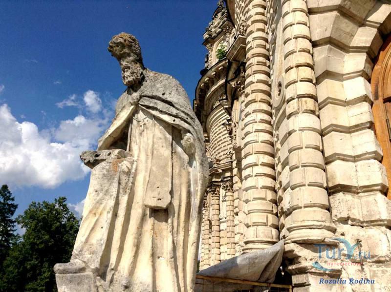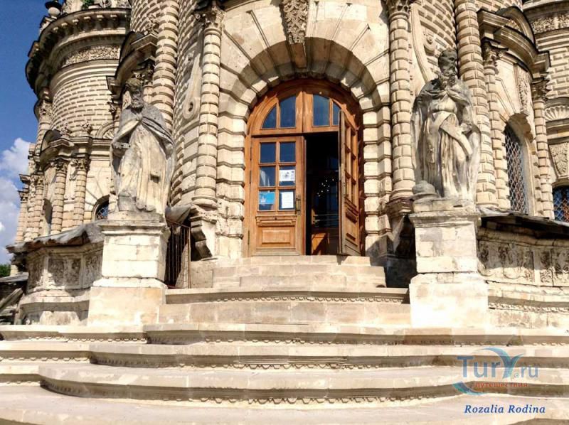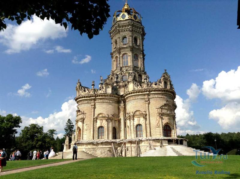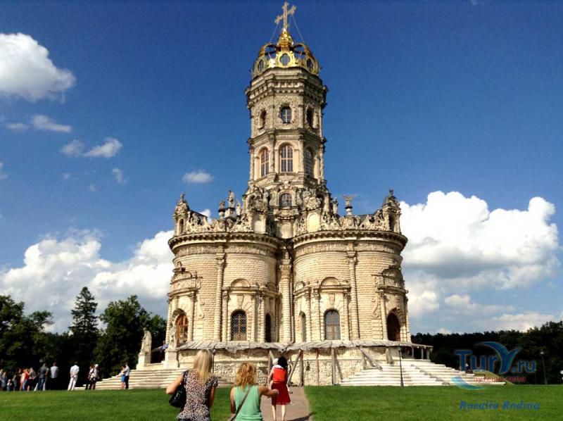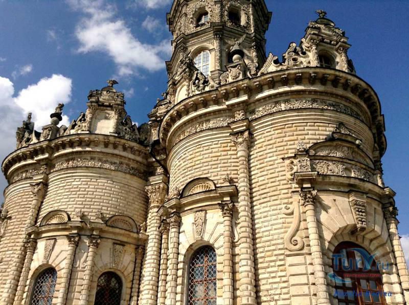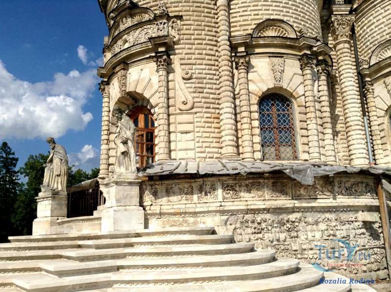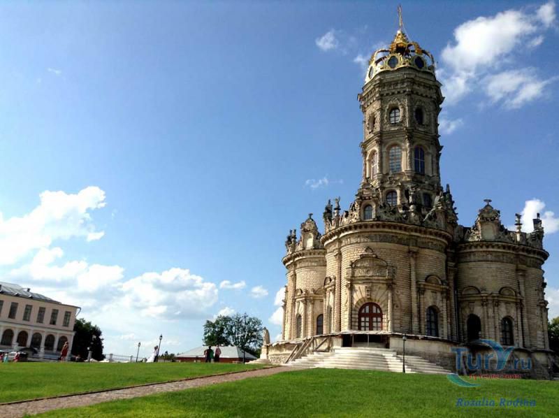 В 1690 году князь Голицын заложил в Дубровицах белокаменную Знаменскую церковь - храм необыкновенной красоты, при закладке которого присутствовал сам Пётр Первый. Храм представляет собой столпообразное здание на высоком постаменте, окруженное открытыми галереями с веерообразными лестницами. Над первым четырёхлепестковым ярусом возвышается стройная восьмигранная башня, увенчанная оригинальным ажурным куполом. Храм снаружи и изнутри богато украшен барельефами, резьбой по камню и круглой скульптурой. Характерные скульптуры и латинские надписи, которые позже были заменены на русские, свидетельствуют о подражании западноевропейским католическим барочным храмам, но есть здесь что-то и от «нарышкинского барокко». Голицын смог воплотить столь дерзкий архитектурный замысел и создать такой шедевр во многом благодаря близости к Петру I.