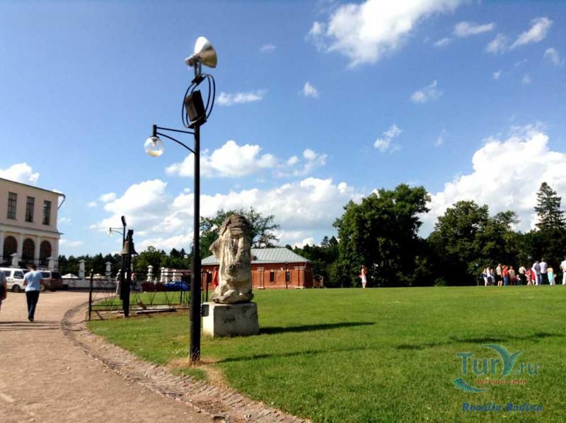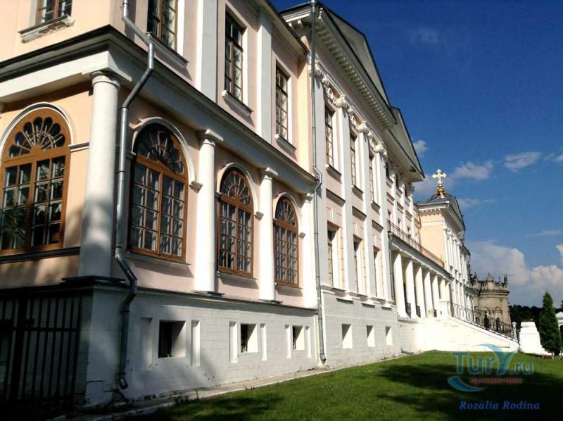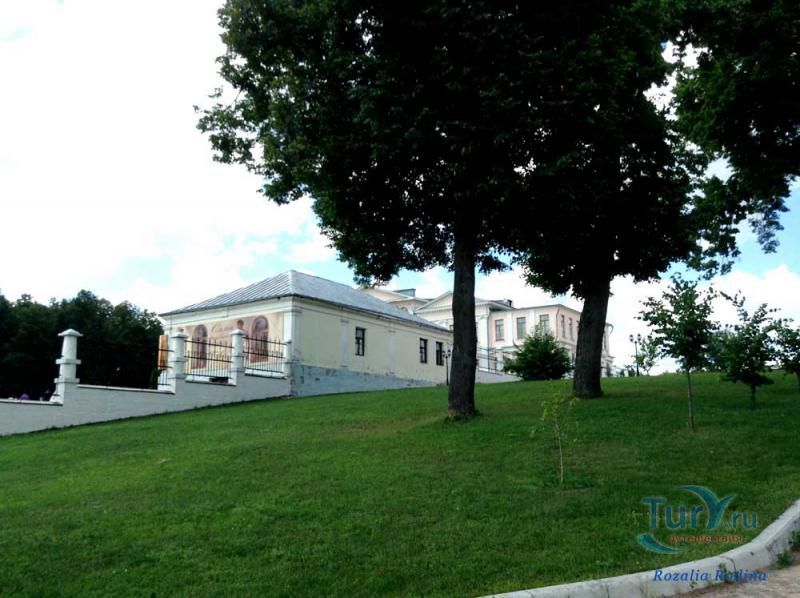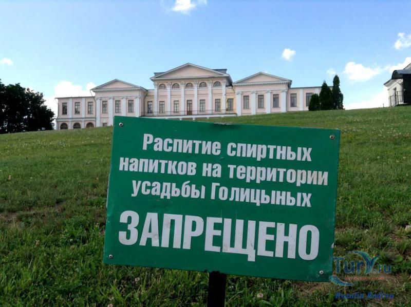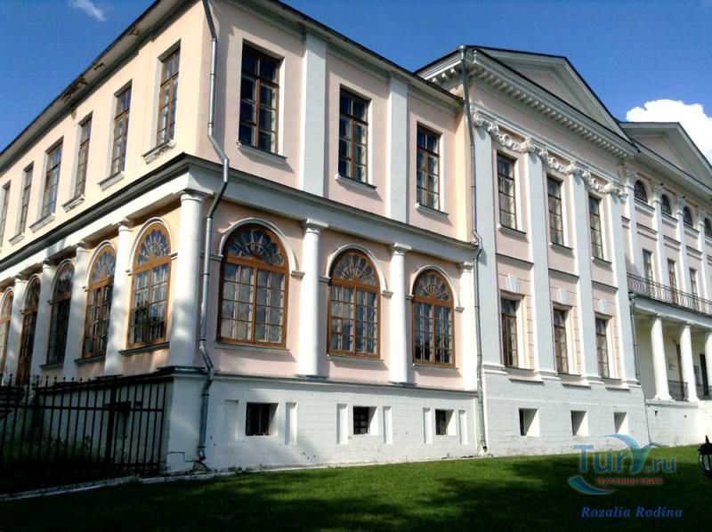 Сохранившийся кирпичный дом, построенный в XVIII веке потомком великого князя С. А. Голицыным, неоднократно перестраивался и приобрел черты классицизма, вместо первоначальных барочных. Парадную лестницу украшают каменные львы. Ныне Голицынский дворец занимает институт животноводства и ЗАГС. В архитектурном отношении так же интересен конный двор в псевдоготическом стиле.