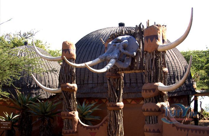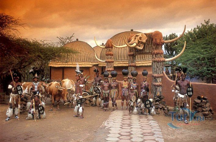 «Чакалэнд» - действующий музей под открытым небом, воссоздавший облик традиционной зулусской деревни. Деревня носит название «Чакалэнд», в честь предводителя племени «зулу» короля Чаки, наводившего ужас на все племена юга Африки. Чака был незаконнорожденным сыном вождя племени зулу. Он не только вернул себе власть, но и сделал зулусов самыми могущественным племенем в этих местах. Чака создал могущественное войско, оснастив его на то время самым современным вооружением, ввел новые порядки и традиции, организовав колоссальную экспансию на огромной территории. Принцип борьбы был таков: «Врагу надо наносить такие удары, от которых он уже не сможет оправиться. Либо он перестанет существовать как самостоятельное племя, либо снова попытается схватить нас за горло». В результате беспощадной тирании было уничтожено множество непокорных племен. Король поддерживал жесткую и даже жестокую дисциплину. Например, после смерти своей матери, вождь запретил всему своему населению пить молоко, засеивать поля и исполнять танцы на два года. Зулусы чуть не вымерли от голода и изнурения. Не удивительно, что жизнь вождя закончилась трагично. Его задушил собственный брат с двумя приближенными полководцами. История деревни, считающейся резиденцией короля зулусов, начинается в 1984 году, когда для съемок сериала «Вождь Чака» (1986 год) было специально построено несколько традиционных зулусских краалей. Телесериал, пользовавшийся большой популярностью, приобрели многие зарубежные компании, а исполнитель главной роли Генри Сел (Henry Cele), стал телевизионной звездой. В финальной сцене фильма были беспощадно сожжены все деревни зулусов, кроме одной, в которой жил отец Чака. После съемок фильма, деревня «Чакалэнд» превратилась в место сохранения традиций народа «зулу». Это поселение, в настоящее время превращенное в отель, совмещенный с этнографическим комплексом, знакомит с обрядами и традициями народа зулу. В принципе, в окрестных деревнях зулусы живут примерно так же, как и двести лет назад, но, понятно, что цивилизация пришла и сюда. Программа посещения комплекса начинается с просмотра документального фильма про деспотичного вождя, после чего туристов приглашают в деревню. Здесь можно заглянуть в задымленное жилище шамана-целителя – сангому, который погадает на костях и проведет ритуал очищения от злых духов. После, англоговорящий, одетый в шкуры, зулус-гид расскажет о великой зулусской армии и о быте и традициях племени зулу. Например, бело-красный флаг над хижиной означает, что в ней живет влюбленный человек: белый цвет – символ чистоты, красный – то, что за любовь нужно сражаться. Во время ознакомительной прогулки гости деревни смогут понаблюдать за различными традиционными работами — сооружением хижины, изготовлением копий, приготовлением пива, художественной отделкой бисером и гончарным промыслом. Воины племени продемонстрируют свои навыки боевого искусства «ассегаай». В гостях у вождя племени туристов угостят старинным африканским блюдом из мяса (на большую порцию рассчитывать не стоит), а также местным тростниковым самогоном – пиватсвалом. Ну а вечером, за ужином, накрытом в соломенной хижине, декорированной в традиционном африканском стиле, и отведав экзотических блюд с дегустацией местного пива, гости могут посмотреть шоу перед 