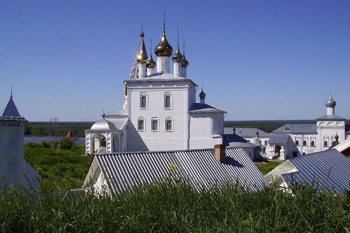 Свято-Троице Никольский мужской монастырь - бесценная жемчужина Гороховца, его главный ориентир и доминанта. Вознесённый на вершину Пужаловой горы, где в глубокой древности располагалось городище, а в XII веке была сооружена деревянная крепость - форпост Владимирского княжества, Свято-Троице Никольский монастырь как бы воспаряет над купеческим Посадом, с его приземлённым и меркантильным бытиём... Удивительно слаженный силуэт обители, летящий над городом, без преувеличений божественно красив. Монастырь основан в 1681 - 1689 годах, при царе Михаиле Федоровиче Романове. Главным строением монастыря является Троицкий собор. Двухэтажный храм вмещает тёплую Никольскую церковь и холодную Троицкую. Прямоугольный в плане четверик, не имеющий внутренних опор, наделён изысканными пропорциями. Храм венчают пять золотых глав. С северо-западной стороны собора стоит шатровая колокольня, его современница. Над усыпальницей г-на Кожина П.П. в XIX столетии был сооружён киворий. На краю северного склона горы, в линии ограды возвышается двухэтажная церковь Иоанна Лествичника (1710-1716 годы). Ко второму этажу поднимается лестница, украшенная в лучших традициях национального зодчества.