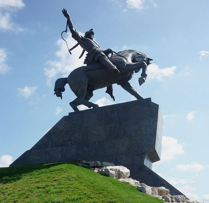 Привстав на стременах, могучей рукой натянув поводья, всадник на высоком утесе осадил разгоряченного коня. Смелое, волевое лицо, энергичный, поднятый в призывном движении жест правой руки с плетью-камчой. Салават как бы обращается к своим товарищем с призывом идти к Пугачеву. Высота памятника достигает 9,8 метров, вес - 40 тонн. Автором является известный монументалист, народный художник Северо-Осетинской и Башкирской АССР, член Союза художников с 1939 года Сосланбек Дафаевич Тавасиев. Каждый день к Салавату идут люди, здесь проходят народные гуляния, выступают артисты, читают свои стихи поэты, звучит курай. Памятник Салавату, признанный крупным достижением отечественной монументальной скульптуры, стал яркой достопримечательностью Уфы, национальным достоянием. И не случайно, изображение памятника национальному герою, вечно юному Салавату Юлаеву стало центральным элементом в гербе Республики Башкортостан.