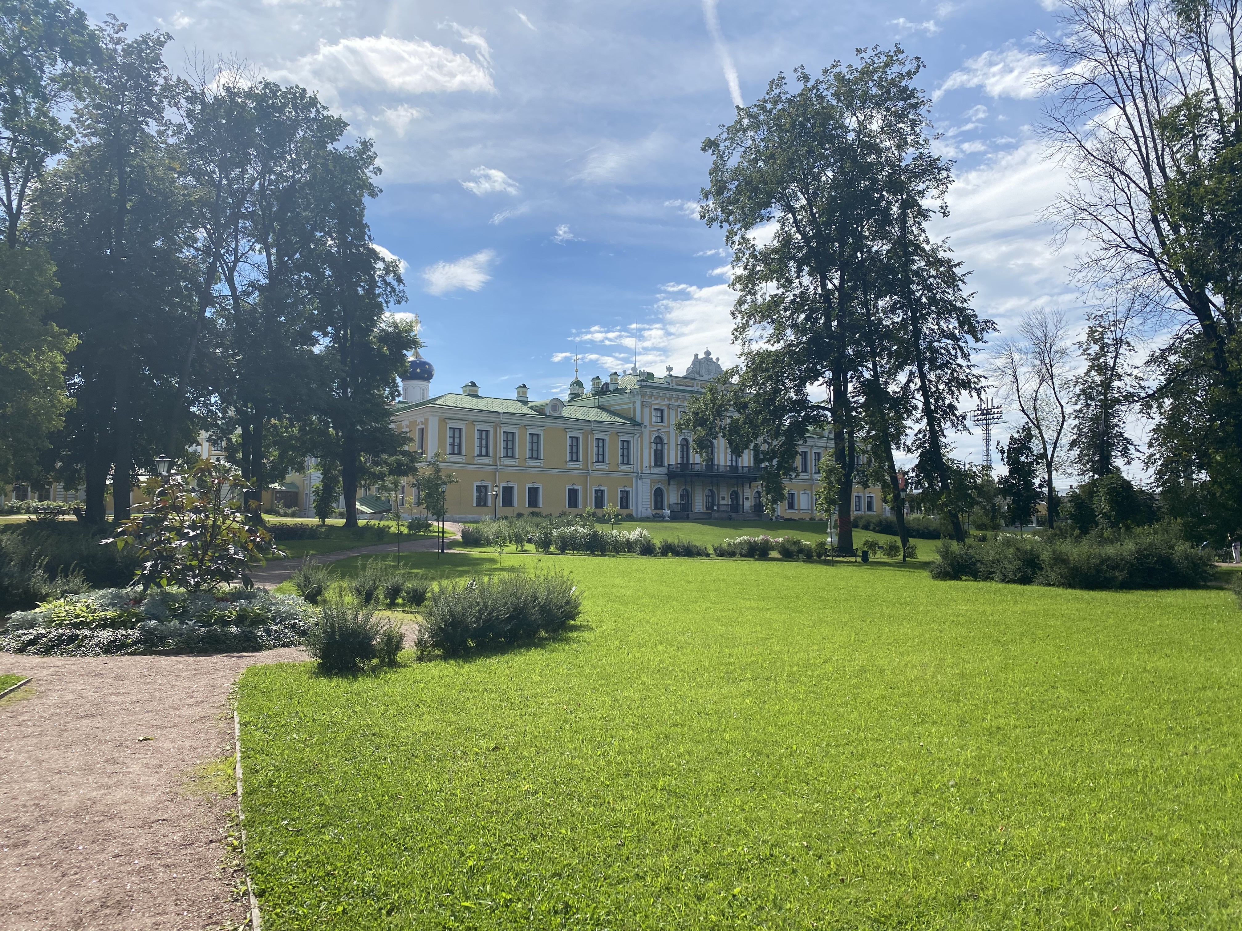 Тверской императорский путевой дворец - памятник архитектуры XVIII века, расположен в историческом центре Твери. Дворец был построен для императрицы Екатерины II в 1763-1778 годах по проекту русского архитектора П.Р. Никитина на месте бывшего архиерейского дома. Дворец, построенный в стиле классицизм с элементами барокко, включал в себя центральный корпус с парадным залом, двумя флигелями – западным и восточным, которые заканчивались обширными крестообразными павильонами. Рядом с дворцом были устроены служебный флигель, оранжерея, конюшни и каретный сарай. Со стороны Волги был сооружен пандус на арках, ведущий на террасу второго этажа. В 30-х годах XIX века рядом с дворцом построили гауптвахту. Дворец часто именовали «Путевым», так как здесь, в городе между двумя столицами, останавливались царствующие особы с многочисленной свитой. С 1898 по 1917 дворец служил резиденцией тверского губернатора. Сегодня в этом здании располагается Тверская областная картинная галерея.