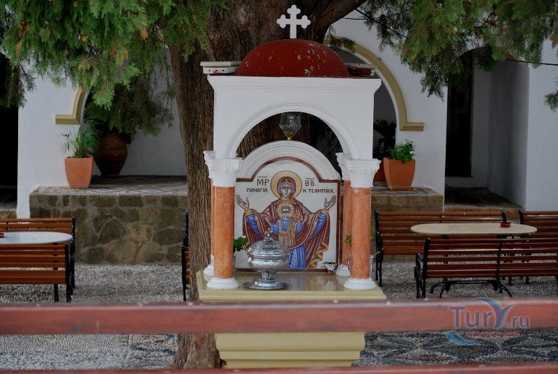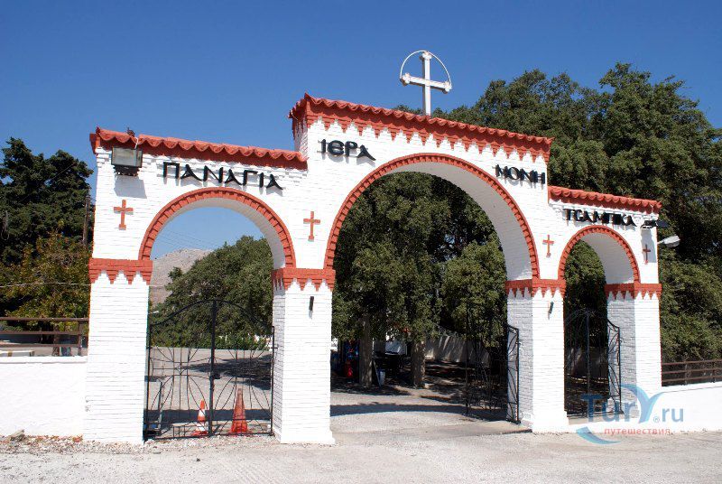 Знаменитый чудодейственный монастырь Богородицы Цамбики (Тсампики) считается покровителем острова Родос. На самом деле монастыря два - старый, известный также под именем Кира (Богоматерь), расположен на вершине, прямо над морем, и новый - расположен немного в стороне от главной дороги. Дорога в 300 ступенек ведет к монастырю, посвященному Богоматери. Согласно легенде, название "Цамбика" (переводится как "зарево огня") Пресвятой Богородице было дано одной бездетной семьей. Однажды ночью муж увидел высоко на горе отсветы огней. Это повторялось и в следующие две ночи, и мужчина отправился посмотреть. На горе он обнаружил икону Святой Девы Марии, от которой и исходило свечение. Мужчина пообещал построить на этом месте монастырь, если его жена забеременеет. Вернувшись домой, он узнал радостную новость. Родившаяся девочка была названа Тсамикой, как и построенный монастырь. Местная история гласит, что Дева Мария творит чудеса - женщине нужно только подняться босиком по ступенькам. В результате многие дети острова названы в честь Богородицы - Цамбикос или Цамбика.