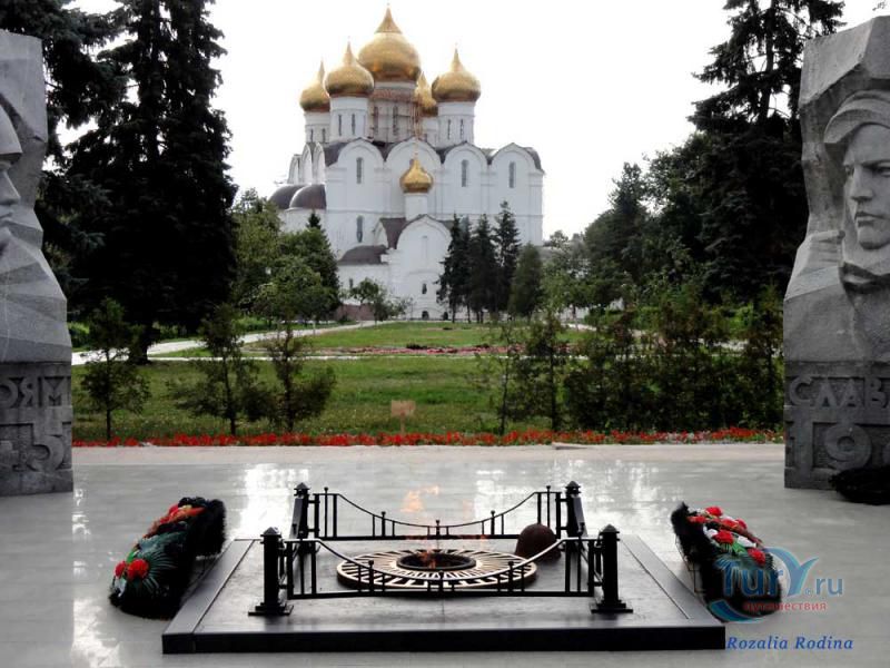 Памятник-монумент в честь боевой и трудовой славы в годы Великой Отечественной войны 1941 - 1945 годов в Ярославле был установлен в 1968 году. Вечный огонь расположен на бульваре Мира, на площади Челюскинцев, в историческом центре города. Памятник представляет собой две рельефные гранитные стены и расположенный между ними вечный огонь. На левой к зрителю стене изображён воин - символ всех мужчин сражавшихся за освобождении от немецко-фашистских оккупантов. На правой стороне женщина-труженица и мать - символ самоотверженности женщин, сумевших в суровые годы войны выстоять духом, заменить на заводе и в поле тех, кто ушел сражаться за Родину. С конца 2000-х годов в проёме между стенами открывается вид на Успенский кафедральный собор. Монумент находится в живописном парке, при посещении которого у людей остается чувство радости, спокойствия и уверенности в завтрашнем дне.