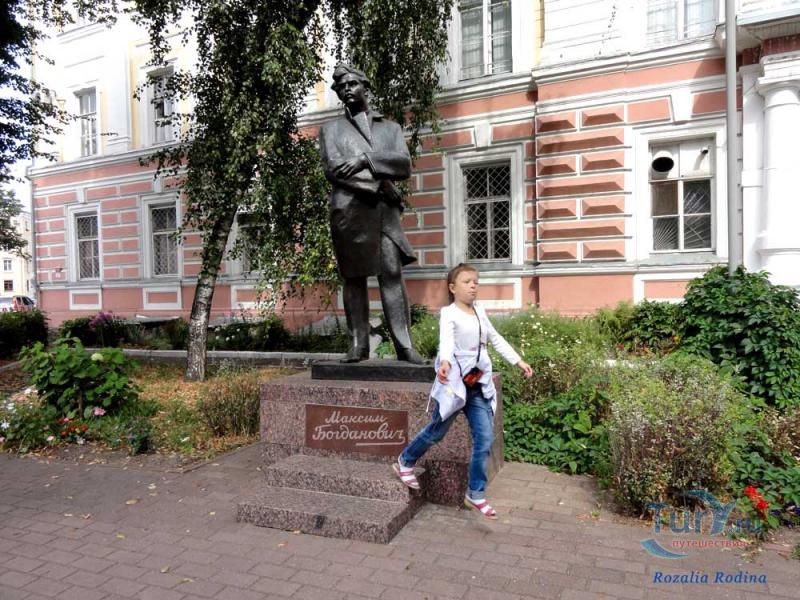 Памятник Максиму Адамовичу Богдановичу установлен в городе Ярославле, в сквере у входа в главный корпус Демидовского университета. Открыт памятник 9 декабря 1981 года, в день 90-летия со дня рождения Богдановича. Максим Адамович Богданович - белорусский поэт, публицист, литературовед, переводчик, классик белорусской литературы, один из создателей белорусской литературы и современного литературного белорусского языка. Лирика Богдановича тесно связана с устной народной поэзией, национально-освободительными идеями, проникнута любовью к трудовому народу. В некоторых стихах звучит протест против мира насилия и социальной несправедливости.