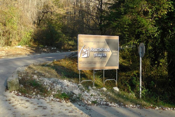 Ахштырская пещера находится в 15 километрах от Адлера, по шоссе на Красную Поляну, в 2 километрах от поселка Казачий Брод. Она расположена в отвесной скале правого берега Мзымта, на высоте 120 метров. Доступ в нее возможен только сверху, по узкой тропинке, проложенной по карнизу скалы. Пещера простирается вглубь скалы на 160 метров, образуя вначале 20-ти метровый коридор, который делится на два зала. Высота в залах достигает 10 метров, ширина 8 метров. Далее идёт резкий глинистый подъём и два узких тупиковых хода. Перед пещерой расположены две площадки, соединенные 12-метровым коридором. Первая из них, связанная с тропинкой, древних отложений не имеет и состоит из известняковых плит, слегка покрытых поздними наносами. Площадь ее около 50 квадратных метров. Вторая площадка, связанная с первой проходным коридором, открывает вход в пещеру. Открыта пещеры была 28 сентября 1903 года французским учёным Эдуардом Альфредом Мартелем и его проводником Гавриилом Ревинко. В 1936 году археологом Сергеем Николаевичем Замятниным в пещере была открыта стоянка первобытного человека.