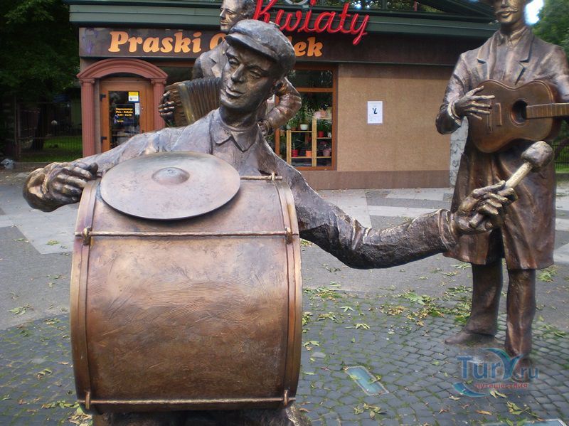 Памятник Пражской Группе трудно не заметить, прогуливаясь улицами Варшавы, в столичном пражском районе. Это памятник уличной музыкальной группе, исполнявшей народный фольклор. Памятник расположен на пересечении улиц Флорианской и Клопотовского, в северной части района Старой Праги, недалеко от собора, Театра Прага, Старой синагоги и Виленского железнодорожного вокзала. Инициатором создания Памятника Пражской Группе был архиепископ Варшавы Лешек Гладзь Славой. Памятник выполнен скульптором Анджеем Ренесом. 17 сентября 2006 года он был установлен в сквере перед курией Варшава-Прага. На постаменте увековечена выполненная из латуни музыкальная группа в составе которой скрипач, гитарист, аккордеонист, барабанщик и музыкант с банджо. Ночью памятник освещается разноцветными огнями. Вокруг памятника был выстроен квадрат со скамейками, где можно отдохнуть и послушать песни, исполняемые уличной музыкальной фольклорной группой, в том числе довоенные песни и песни польских легионов, спетые во время оккупации в Варшаве. Всего записано 100 песен. Песни звучат после отправления смс на номер 7141 с текстом "BAND" или "KAPELA". Пражская Группа популяризует народный ансамбль Варшавы с 1 сентября 1988 года, вот уже 27-й год она на Варшавской сцене. Позади памятника находится небольшой цветочный магазин, где можно приобрести романтическую розу и возложить её у ног статуи уличных пражских музыкантов под их мелодию "Красные яблоки". Аккордеонист и вокалист Пражской уличной музыкальной группы Чеслав Якубик сказал: "Мы принимаем этот памятник, как дань уважения музыкантов в Варшаве, как знак братства между всеми музыкальными группами народной музыки". Памятник Пражской Группе является одним из самых интересных памятников в Варшаве.
