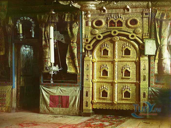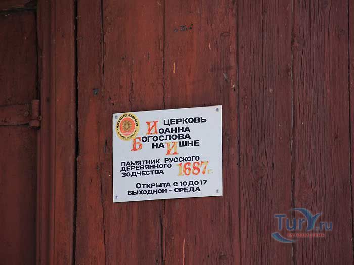 Церковь Иоанна Богослова на Ишне - памятник деревянного зодчества, расположена в 3 километрах к юго-западу от Ростова, в селе Богослов, на реке Ишня. Церковь построена в 1687 году в память о явлении на этом месте Иоанна Богослова Авраамию Ростовскому. Это - единственный древний деревянный храм Ярославской области и один из немногих в центре России. Храм очень живописен и по своей общей композиции принадлежит к типу ярусных церквей, распространённых в России в конце XVII века. По принятой традиции, здание, приходившее в ветхость, заменяли новым, размеры и формы которого повторяли, как правило, предшествующую постройку. Эта церковь запоминается, прежде всего, совершенством точно найденных пропорций и соотношений объёмов. Подобно кораблю вырастает она на живописном берегу реки Ишня. Вознесенный на высокий подклет, храм господствует над окружающей местностью. Его интерьер производит не меньшее впечатление, чем наружный облик. Низкая, полутёмная галерея с волоковыми окнами резко контрастирует с высоким, наполненным светом пространством самого храма и трапезной. Их стены настолько чисто выструганы, что кажутся полированными. Образы из иконостаса и резные позолоченные царские врата 1562 года работы мастера Исайи сегодня экспонируются в Государственном музее-заповеднике Ростовский кремль, филиалом которого является церковь. В самом же храме находится точная копия царских врат.