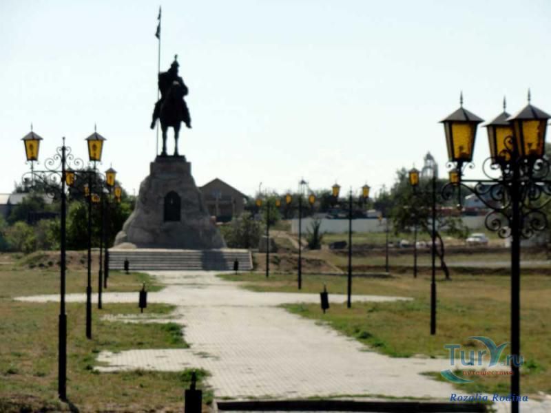 Памятник основателю города Елабуга установлен в сквере недалеко от Елабужского городища. На подходе к городищу туристов встречает 15-ти тонный памятник основателю города Алабуги эмиру Волжской Болгарии Ату Исхаку Ибрагиму Бен Мухаммад Бен Блтвар. Отливали памятник в Подмосковье, в Жуковском. Старое название Елабуги «Алабуга» в переводе означает «впереди идущий воин». Памятник основателю Алабуги (Елабуги) Эмиру Булгарии Ибрагиму I поставлен в честь тысячелетия города. Празднование 1000-летия города Елабуги это, прежде всего официальное признание учеными и властями Татарстана, булгарского свода летописей "Джагфар Тарихы". Здесь же рядом расположено Елабужское городище, на котором сохранилась древняя булгарская Башня и остатки крепости-мечети 9 - 11 веков. Недалеко от памятника построен новый ресторан, выполненный в древнем стиле, в котором усталые путники могут вкусно перекусить или утолить жажду.