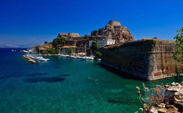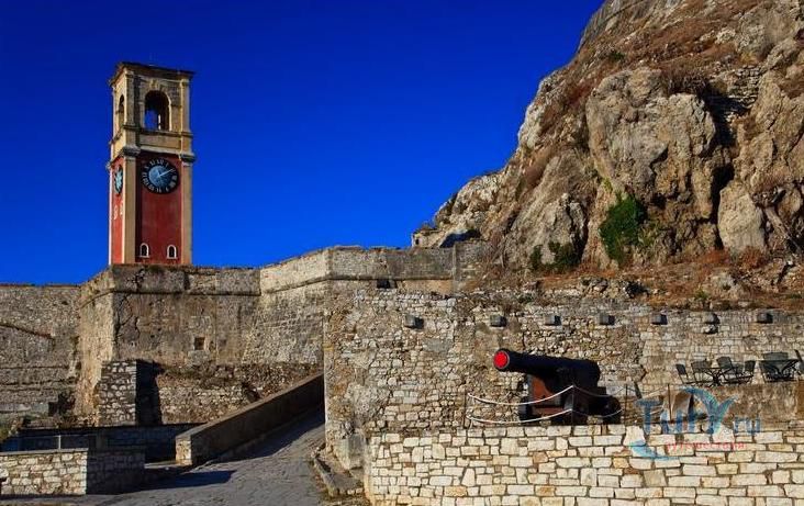 Старая или Морская крепость представляет собой венецианскую крепость (600 метров в длину и 200 метров в ширину), построенную на искусственном островке, с оборонительными сооружениями по всему периметру. По результатам археологических раскопок можно утверждать, что первые оборонительные сооружение появились здесь еще в VII-VIII веках, во время Византийской империи. На их месте в 1550-1559 годах венецианцами была построена мощная крепость - были укреплены старые византийские стены и вырыт канал "Contra-Fossa", что превратило мыс в искусственный остров, перейти на который можно было только по подъемному мосту. Завершено строительство крепости было уже под руководством англичан. Последние постройки относятся к XIX веку. До наших дней хорошо сохранились два впечатляющих бастиона, названные в честь итальянских инженеров Мартиненго и Саворньян. Англичане не только строили здания, но и вносили архитектурные дополнения в уже построенные объекты. Например, церковь Св. Георгия (1840 год) с дорическими колоннами. Но были безвозвратно утрачены многие храмы и здания - Дворец венецианского правителя в их числе.