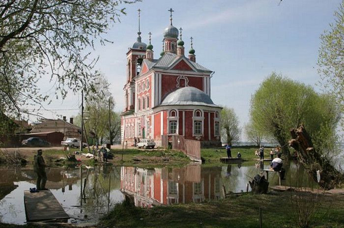 Церковь Сорока Мучеников Севастийских расположена на живописном берегу Плещеева озера, в древней Рыбной слободе. Время её основания точно неизвестно и датируется началом XVII века. В патриарших окладных книгах храм Святых Сорока Мучеников в Переславле-Залесском числился с 1625 года. Изначально храм был деревянным, в 1775 году, на средства московских купцов Максима и Ивана Щелягиных, на его месте была построена каменная церковь. В XIX веке к храму была пристроена высокая, увенчанная шпилем колокольня. В начале XX века, при священномученике Евгении Елховском, прослужившем в храме 12 лет, пол церкви был выложен плиткой, а стены и своды покрыты росписью, фрагменты которой сохранились до наших дней.