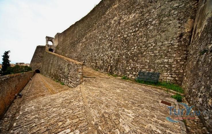 Новая или Береговая крепость (по-гречески Нео Фрурио) - это огромный комплекс оборонительных сооружений, возведенных в северо-восточной части города Керкира, на холме Святого Марка. Крепость была построена венецианцами по проекту итальянского архитектора Ферранте Вителли в 1572-1645 годах. Крепость состоит из двух больших одинаковых бастионов и считается чудом архитектуры среди крепостей, хотя размерами она меньше Старой крепости. Пространство крепости поделено на три части, а бастионы смотрят и в сторону острова, и в сторону города. Два ряда стен (одна стена с зубцами по верхнему краю, а другая в виде сложных сферических ниш), соединяются между собой целой системой проходов и коридоров. Крылатый лев святого Марка, символ Венеции, встречается по всей крепости. С высоты этой крепости открывается чудесный вид на город Керкиру и море.