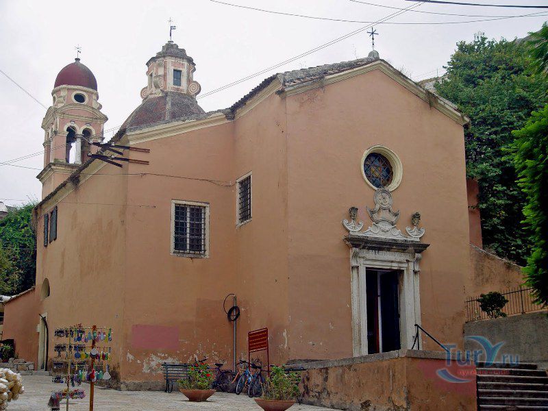 В соответствии с различными документами, даты постройки церкви расходятся. По одним источникам, начал ее строить в 1678 году латинский архиепископ Корфу Марко Антонио Барбаджо, строительство было завершено в 1723 году. По другим, начали - в 1663 году, а завершили - в 1749 году.