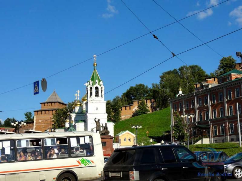 В 1808 году губернатор А.М. Руновский выразил пожелание граждан Нижегородской губернии установить в Нижнем Новгороде памятник Минину и Пожарскому. В 1808 году скульптор И.П. Мартос выиграл конкурс на лучший проект памятника. Но правительство России решило установить монумент на Красной площади в Москве. В 2004 году мэр Москвы Лужков предложил скульптору З.К. Церетели изваять копию памятника Минину и Пожарскому для Нижнего Новгорода. Памятник был открыт 4 ноября 2005 года. Монумент освятил патриарх Алексий II. На церемонии открытия Юрий Лужков сказал: "Установленный у храма Рождества Иоанна Предтечи монумент символизирует возвращение из Москвы вождей народного ополчения 1612 года".