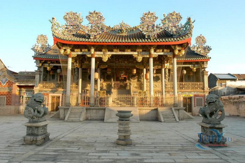 Леонг Сан-Тонг Ку Конгси (Ку Конгси) - клановый храм династии Kу - одного из самых известных китайских родовых союзов в Малайзии, расположен на северо-восточном побережье острова Пенанг, в самом центре старой части города Джорджтаун. Клан Ку (клан Зала Горного Дракона) одним из первых начал заниматься коммерцией на острове Пенанг и уже в XVII веке считался самым богатым и влиятельным китайским семейством Малакки. В XIX столетии этому клану в Джорджтауне принадлежал целый квартал, напоминавший традиционную деревню с собственными административным центром, финансовыми, образовательными и общественными организациями. Вокруг большого внутреннего двора, вымощенного гранитными плитами, были возведены клановый храм, четыре ряда жилых домов членов династии Ку, оперный театр, магазины и административные здания. Поселение было обнесено стеной, внутрь комплекса вели три входа - главный вход находился на Кэннон-стрит. Клановый храм Ку Конгси был построен в 1851 году, а в 1894 году, от удара молнии, здание сгорело дотла. Говорят, что таким образом боги покарали клан Ку за гордыню - пышностью и богатством родовой храм превосходил дворец Императора Поднебесной. В 1902-1906 годах годах Ку Конгси был отстроен заново - он был меньше и скромнее первого храма, но даже его упрощённая копия поражает пышностью декора и богатством отделки. Стены здания украшены богатой резьбой по камню и дереву, декоративным орнаментом, лепниной, скульптурами и фресками, выполненными лучшими мастерами из Китая и Малайзии. Отделка Ку Конгси выполнена в стиле храмов Фуцзянь, резная крыша здания сама по себе является настоящим произведением искусства. Клановый храм был посвящён божественным покровителям и защитникам семейства Ку, а также являлся местом поклонения усопшим предкам. В Ку Конгси всего три зала - центральный выполняет роль храма, его стены украшены фресками с изображениями тридцати шести Небесных хранителей клана. В зале, расположенном в правом крыле здания, хранятся позолоченные таблички с именами членов клана (таблички расположены в соответствии с иерархией членов семейства Ку). В третьем зале сейчас располагается музей, экспозиция которого знакомит с историей клана Ку. На сцене театра, в течение седьмого лунного месяца по китайскому календарю, и в наши дни звучит традиционная китайская опера. В настоящее время клановый храм Ку Конгси является одной их самых известных исторических и архитектурных достопримечательностей Пенанга, в составе исторического центра Джорджтауна Ку Конгси внесен в список Всемирного наследия ЮНЕСКО.