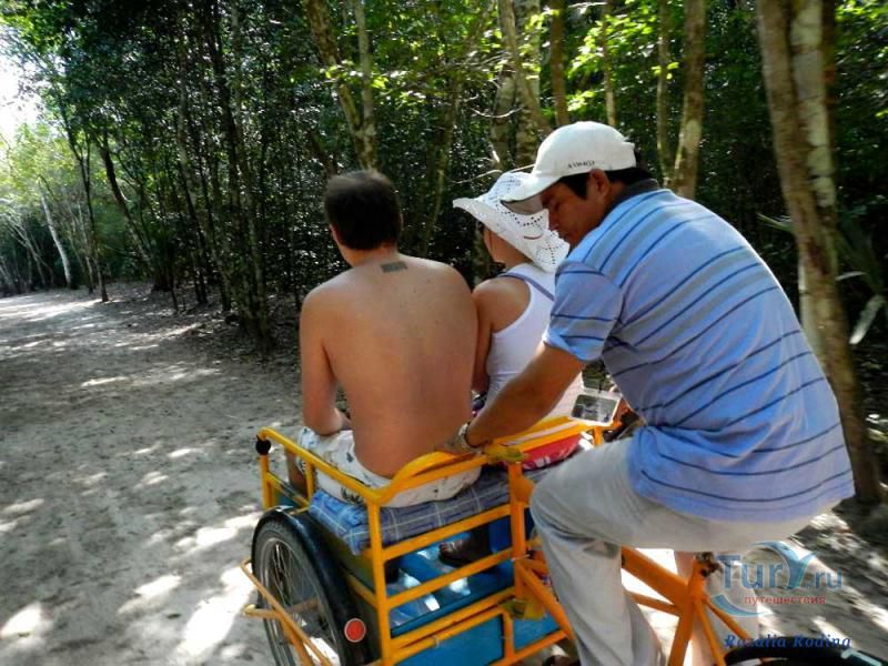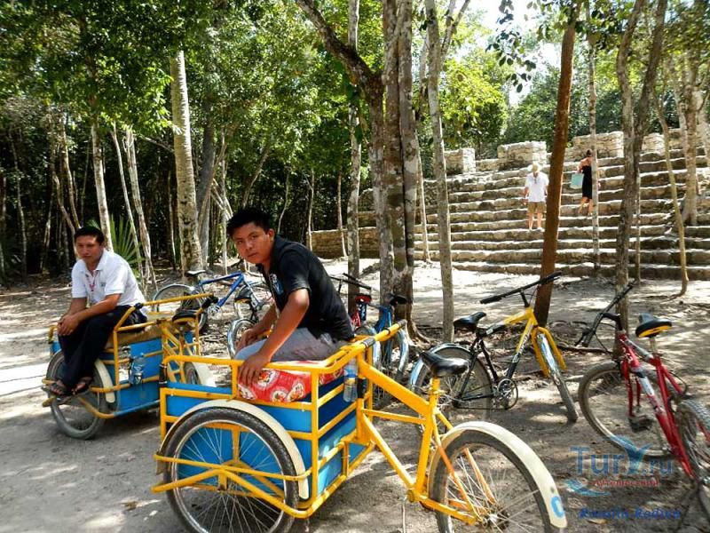 Современный Коба - небольшой провинциальный городок, расположившийся в 40 км северо-западнее известного туристического места Тулум. В Кобе есть магазинчики, рестораны, кафе, отели, но не это привлекает сюда туристов со всего света - главной достопримечательностью Кобы является большой загадочный древний город, утопающий в джунглях, среди пяти озер, и хранящий тайны древних храмов майя. В период расцвета город насчитывал 50 тысяч жителей и занимал площадь около 80 кв.км. Здесь сохранились огромные храмовые пирамиды, самая высокая из которых, высотой 42 метра, известна как пирамида Nohoch Mul. Здесь, в карстовых озерах можно увидеть крокодилов, а в джунглях - диковинных птиц и животных. Это не историческая экскурсия - это путешествие на велосипедах по городу забытых на тысячелетия храмов, оставленного по неизвестным причинам древнего религиозного центра... После обзора уставшие путники могут освежиться, поплавав в сеноте.