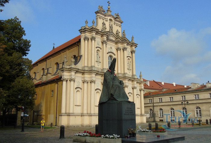 Церковь Святого Иосифа, Супруга Пресвятой Девы Марии (Церковь Визитанток) расположена в историческом центре Варшавы, в Краковском предместье. По приглашению королевы Марии-Луизы Гонзага, супруги Яна Казимира, летом 1654 года в Варшаву прибыли двенадцать монахинь-визитанток с матерью Мэри Кэтрин де Глетэн, для которых недалеко от королевской резиденции были построены деревянные церковь и монастырь. Во время шведского и татарского нашествий в 1655-1657 годах монахини временно покидали Варшаву. Строительство каменной церкви в стиле позднего барокко было начато в 1727 году по инициативе Елизаветы Сенявской-Любомирской и Марии Елены Понятовской. Автором проекта стал архитектор Кароль Антоний Бай. Из-за проблем с финансированием в 1733 году работы были приостановлены и возобновлены только в 1754 году, при поддержке Марии Софии Чарторыйской. Строительство продолжили архитекторы Эфраим Шрёгер и Якуб Фонтана, добавив к архитектурному стилю здания элементы рококо. Скульптуры на фасаде и кафедра в церкви выполнены Иоганном Георгом Плерша. 20 сентября 1761 года торжественное освящение нового храма совершил епископ Юзеф Анджей Залуский. Фасад церкви разделён колоннами по вертикали и ломаным карнизом - по горизонтали, украшен скульптурами. Над порталом размещён герб Ордена Посещения Пресвятой Девы Марии, изображающий сердце, пронзённое стрелами и увенчанное крестом. Храм имеет один неф с главным алтарём и шестью боковыми часовнями в стиле барокко и рококо. Завершается неф амвоном в форме лодки со сводами и люнетами над алтарём. Главный алтарь содержит изображение Благовещения Пресвятой Девы Марии, написанное в 1759 году художником Тадеушем Кунцем. Высокую историческую и художественную ценность имеют картины, расположенные в алтарях и нефе церкви: "Оплакивание" кисти Джона Рейснера, написанная в 1696 году, "Санкт-Алоизий Гонзага" работы Даниэля Шульца, выполненная по заказу королевы Марии-Луизы для храма, "Обучение Мадонной святой Анны" Франциска Лекшицкого, а также скиния XVII века из чёрного дерева и серебра, подаренная основательницей храма Марией-Луизой Гонзага де Невер, королевой Польши. В 1765 году была проведена реконструкция сводов под руководством архитектора Энрико Маркони. В 1807 году монахини были вынуждены временно покинуть монастырь, в стенах которого был размещён полевой госпиталь для наполеоновской армии. В 1825-1826 годах, будучи студентом Варшавского лицея, Фредерик Шопен играл на органе в церкви во время воскресных богослужений. После Январского восстания 1864 года царскими властями был запрещён на 40 лет приём новых монахинь в монастырь, 50 сестёр-визитанток покинули обитель, остались только 7 монахинь, благодаря им удалось сохранить церковь и монастырь, который снова был открыт в 1905 году. Церковь Визитанток - одна из немногих в Варшаве, которая избежала сильных разрушений во время Второй мировой войны, большинство реликвий и произведений искусства из храма, вывезенные нацистами в Германию, удалось вернуть после войны. С 1960 года и до своей отставки настоятелем храма был священник и поэт Ян Твардовский, эпитафия которому установлена в церкви. Перед храмом находится памятнику Предстоятелю польскому, кардиналу Стефану Вышинскому.