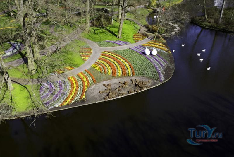 Парк цветов Кёйкенхоф - это одна из главных достопримечательностей Голландии, одно из самых фотографируемых и фотогеничных мест в мире. Он находится между Амстердамом и Гаагой в так называемом Bollenstreek (Регионе тюльпанов). Цветы здесь самых необычных расцветок, размеров и форм. А вокруг - старинный парк, вековые деревья, живописные пруды, по поверхности которых скользят лебеди; каналы, водопады и фонтаны; множество скульптур. Площадь парка 28 гектаров, здесь же оранжереи с экзотическими растениями, тематические сады, ландшафты английских, французских и японских парков, водные композиции и многое другое.