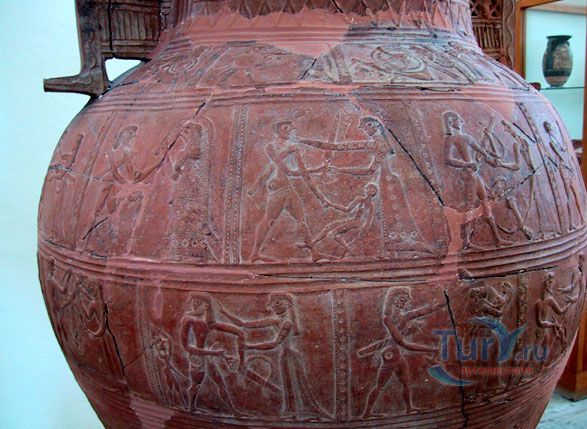 Археологический Музей Миконоса славится богатой коллекцией сосудов, представляющей кикладские традиции в изготовлении керамических изделий начиная с геометрической эпохи и до VII в. до н.э. с изображением Троянского коня и падения Трои. Интерес представляют также артефакты, найденные при раскопках некрополя, расположенного на соседнем острове Риния.