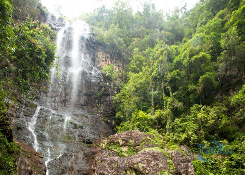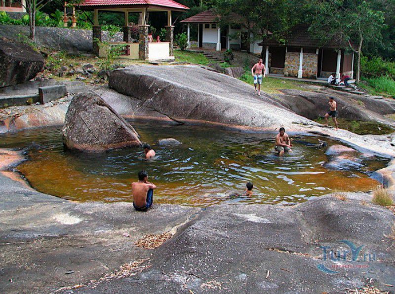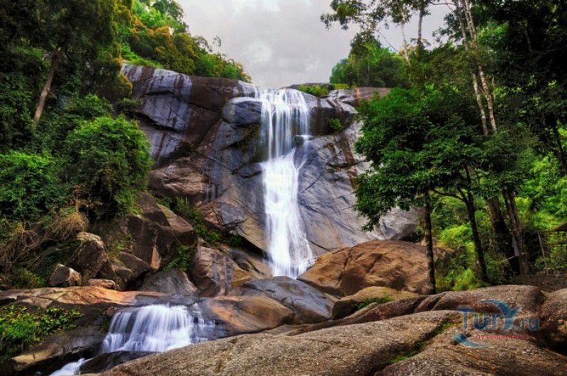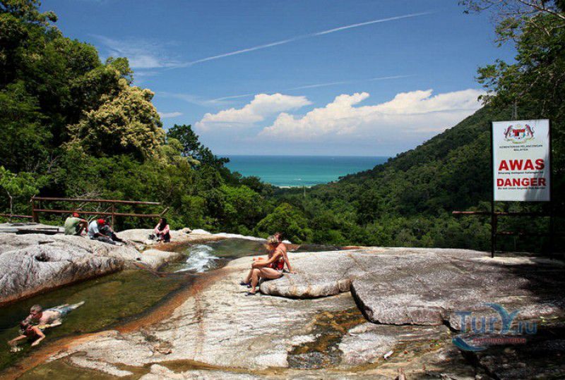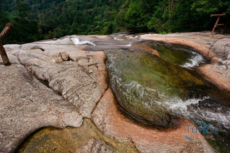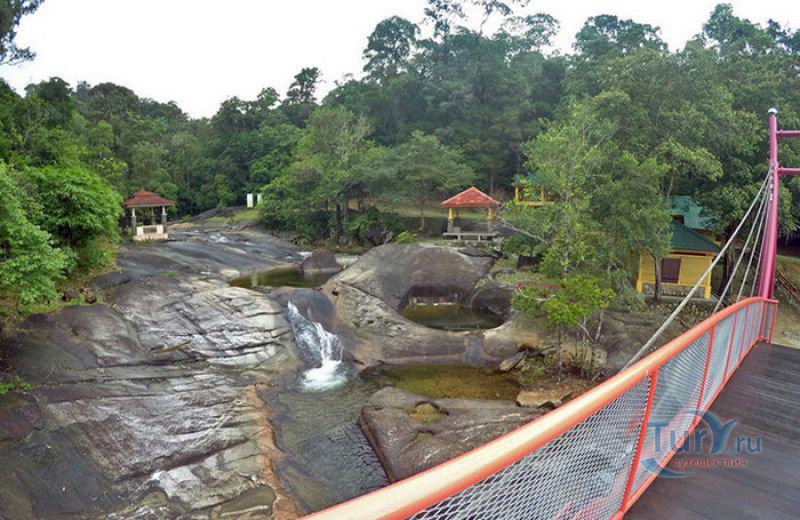 Водопад Талага Туджух (Водопад Семь Колодцев) - одна из самых известных природных достопримечательностей Лангкави, расположен в северо-западной части острова, в 30 километрах от города Куах. Талага Туджух образован семью водными потоками, которые, стекая по склонам горы Mount Mat Cincang, пробили в горной породе семь небольших бассейнов-колодцев, расположенных друг над другом. Вода перетекает из одного колодца в другой и, наконец, обрушивается вниз с 90-метровой высоты в седьмой, самый большой из бассейнов. Подняться к вершине водопада можно по тропе, проложенной сквозь густой тропический лес, растущий на склонах горы. Крутой подъем по 638 каменным ступеням занимает около 45 минут, вдоль тропы установлены лавочки и небольшие беседки, где можно отдохнуть и укрыться от дождя. С вершины открывается красивый панорамный вид на живописные окрестности и Малаккский пролив. В прохладной воде Семи колодцев приятно освежиться в жаркий день, даже в сухой сезон в природных бассейнах достаточно воды для принятия ванн. Местные жители утверждают, что в давние времена в бассейнах водопада Талага Туджух купались лесные феи, отчего вода в колодцах приобрела целебные свойства и способна "смывать" с человека болезни и несчастья. Во время прогулки по джунглям, окружающим водопад, можно увидеть длиннохвостых макак, птиц-носорогов и гигантскую кремовую белку. У подножия водопада расположены магазины, кафе и парковка.
