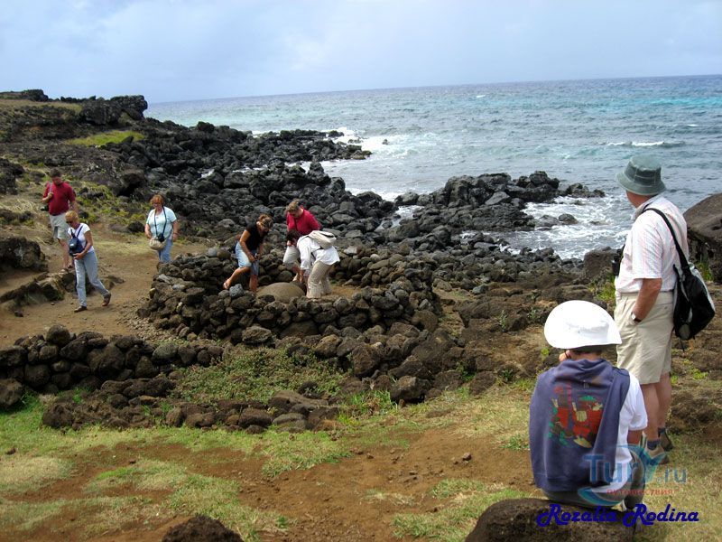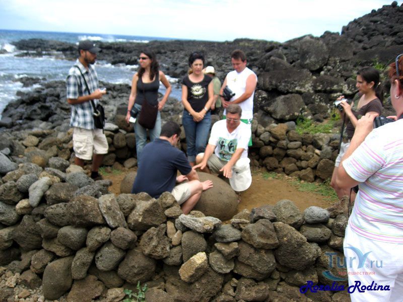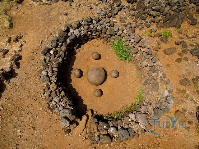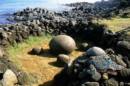 Те-Пито-те-Хенуа (Te-Pito-te-Henua), что в переводе с рапануйского языка означает "Пуп Земли", - церемониальная площадка, расположенная на северо-восточном побережье острова Пасхи, в центре которой находится необычный камень идеально круглой формы. Размер этого камня составляет около одного метра в диаметре, вокруг него расположены еще 4 небольших камня, ориентированные по сторонам света. Площадка по кругу обнесена невысокой оградой из других, обычных для этого острова, камней. Загадкой является то обстоятельство, что камней, аналогичных центральному, ни поблизости, ни на всем острове Пасхи больше нет. Его состав и идеально круглая конфигурация уникальны. Что это - остатки метеорита, свалившегося с неба на остров или проделки инопланетян? Ученые ломают голову над тем откуда взялся этот камень и каково его предназначение. Предполагается что на этом месте древние жители острова Пасхи проводили различные ритуалы. Антрополог Кристиан Вальтер утверждает, что площадка Те-Пито-те-Хенуа была установлена в 1960-х годах, чтобы привлечь на остров доверчивых туристов. Мнения ученых расходятся, а загадка остается. И это не удивительно, ведь остров Пасхи и есть одна сплошная загадка, затерянная вдали от цивилизации, в синих водах Тихого океана.